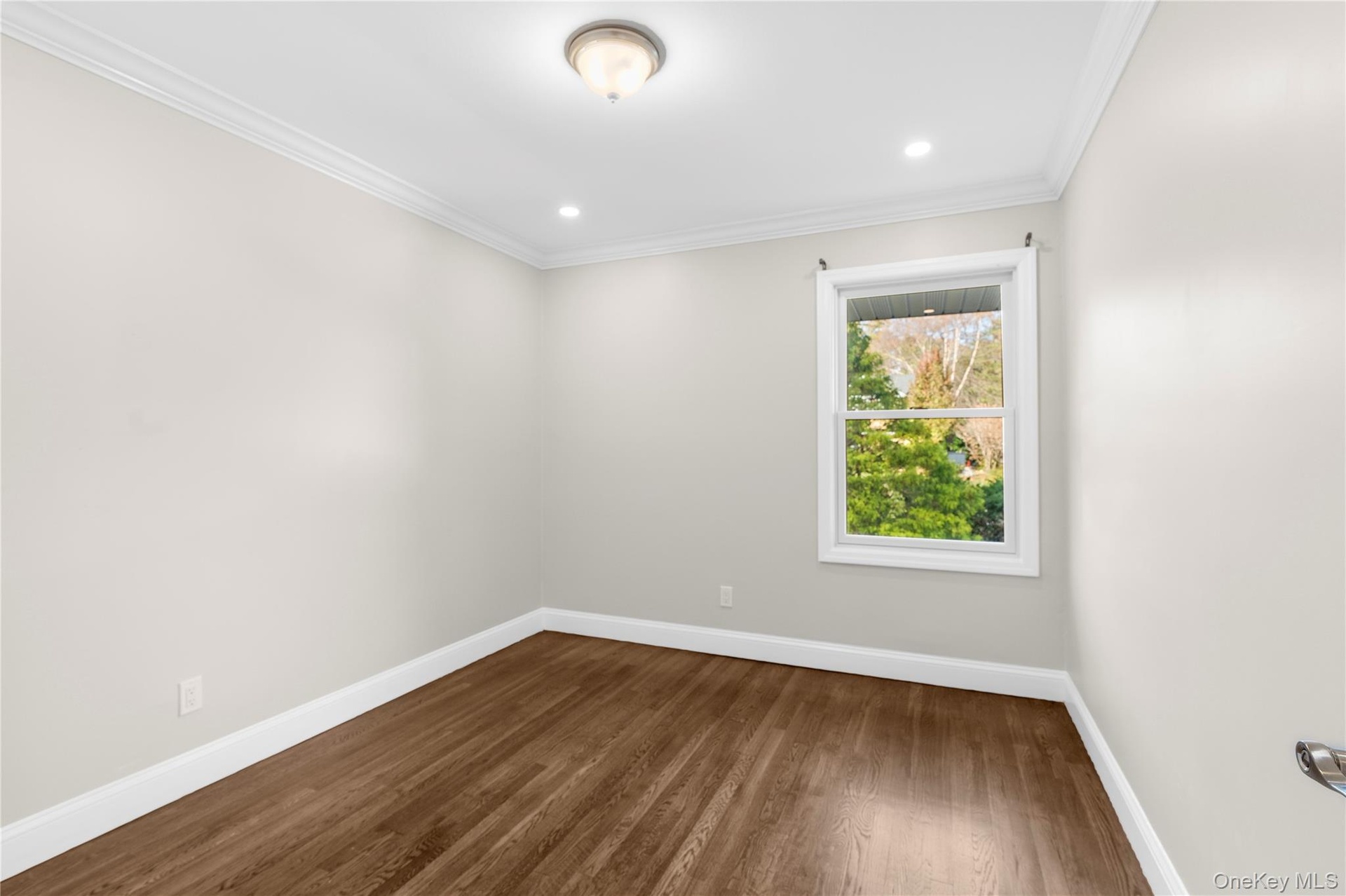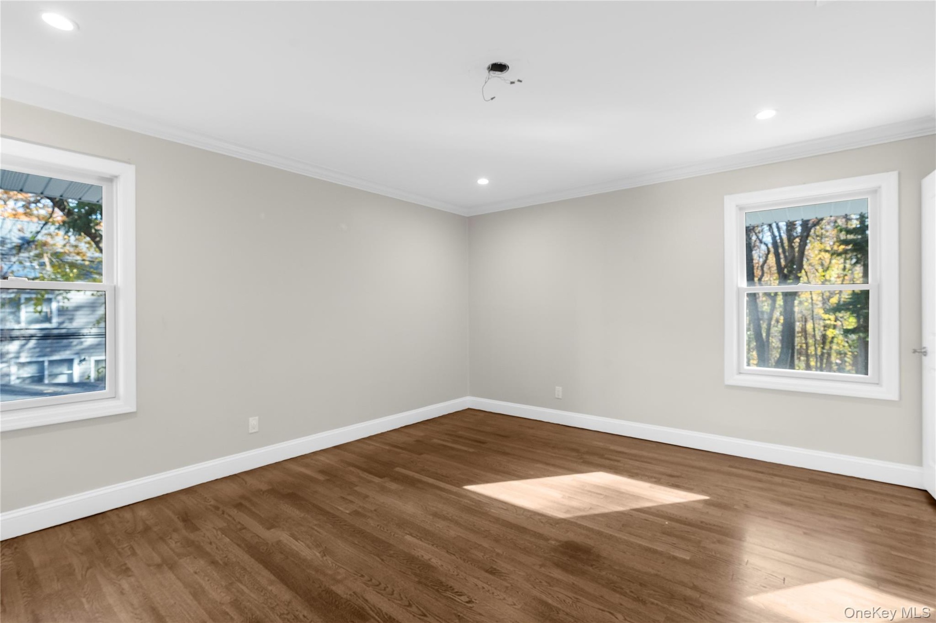 - Unfurnished room featuring crown molding, wood finished floors, recessed lighting, and healthy amount of natural light