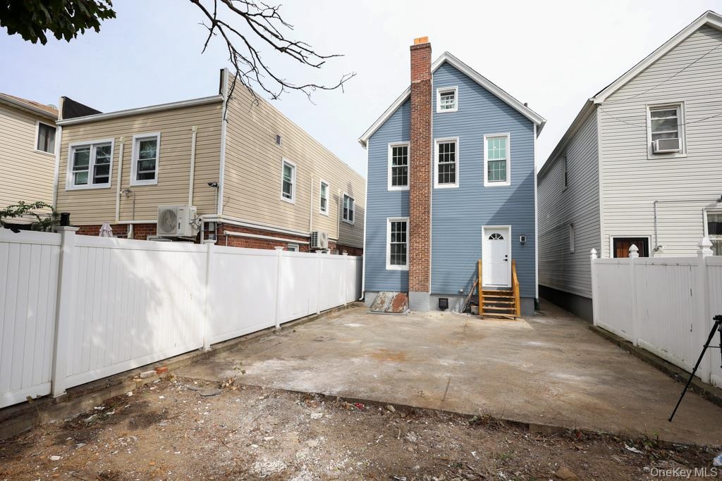 - Rear view of property featuring a patio, a chimney, entry steps, and a fenced backyard