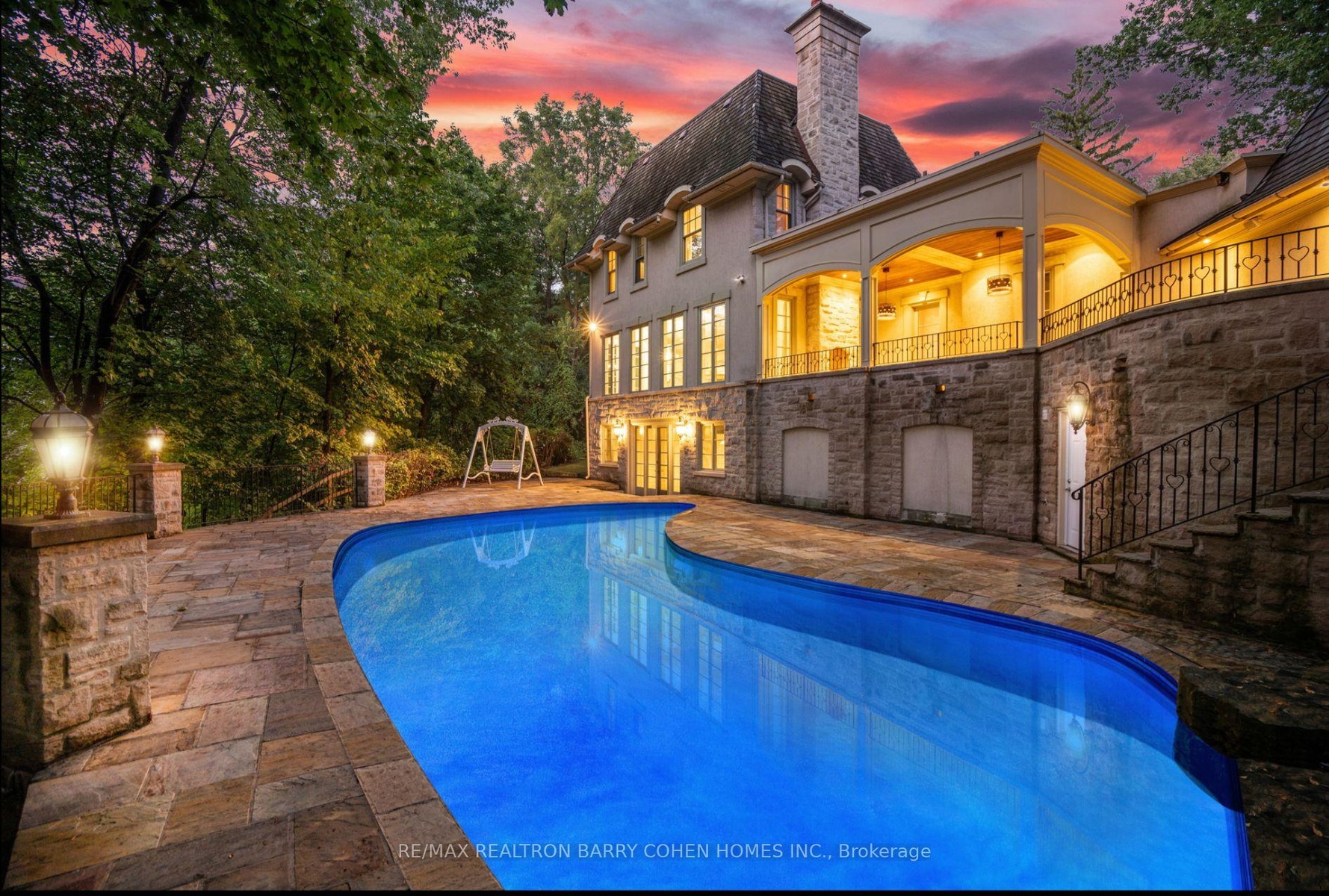 Backs Onto Ravine! Perched gracefully at the highest point of Hoggs Hollow, this French Château inspired masterpiece sits on a spectacular 239.08 x 207.81 ft ravine lot (approx. 1.14 acres). Designed by Dee Dee Taylor Hannah and built by award-winning builder Michael Rossini, this timeless stone estate offers over 10,000 sq.ft. of luxurious living space, blending European elegance with modern comfort. The homes distinctive curved and symmetrical design showcases architectural artistry rarely seen today. Featuring 4 bedrooms with ensuites, 9 washrooms, and a 3-car garage with a circular driveway accommodating up to 15 cars, all principal rooms face west, overlooking the serene ravine. A grand marble foyer, curved hallways, and custom millwork opens to elegant living and dining rooms that walk out to the ravine and garden. Two libraries on main floor, five fireplaces, built-in speakers, 10-ft ceilings, and hardwood floors throughout. The gourmet kitchen with double granite islands and an open-concept family room with motorized curtains creates a warm and inviting space for entertaining.Step out to a 700 sq.ft. patio with outdoor fireplace and panoramic ravine views. The primary suite features a lavish 9-piece ensuite, his & her walk-in closets, and heated bathroom floors. The walk-out lower level wth heated floors includes a home theatre, wine cellar, sauna, wet bar, nanny/guest ensuite, and a recreation room with fireplace opening directly to the backyard oasis.The heated concrete pool with cascading waterfall, framed by mature trees, creates a private, resort-like retreat. A rare offering combining elegance, privacy, and tranquility, just moments from the Granite Club, top private schools (Crescent, TFS, Havergal, UCC, BSS), fine dining, and Rosedale & Don Valley Golf Clubs.A true statement of taste, craftsmanship, and enduring luxury in one of Torontos most prestigious enclaves.