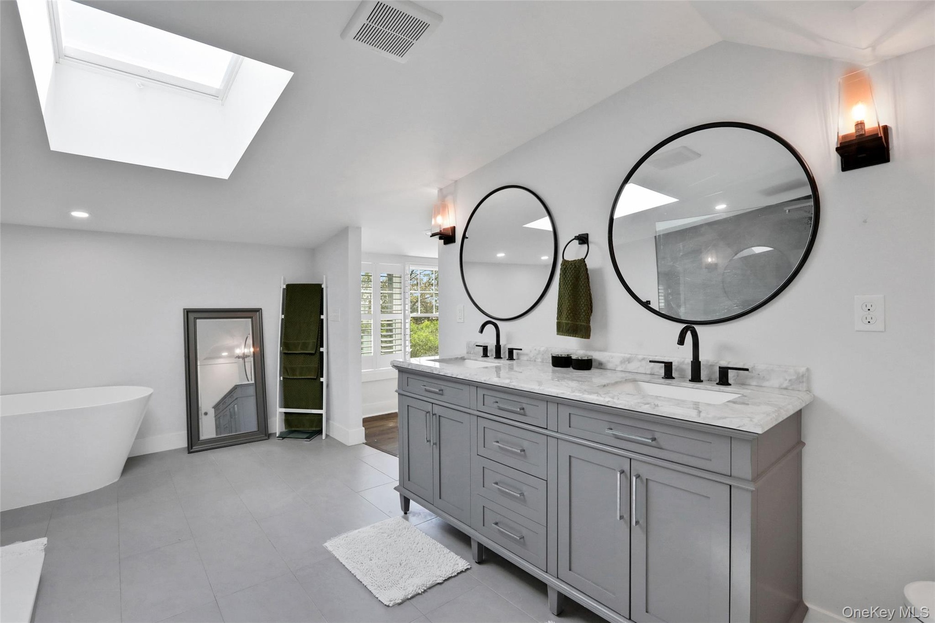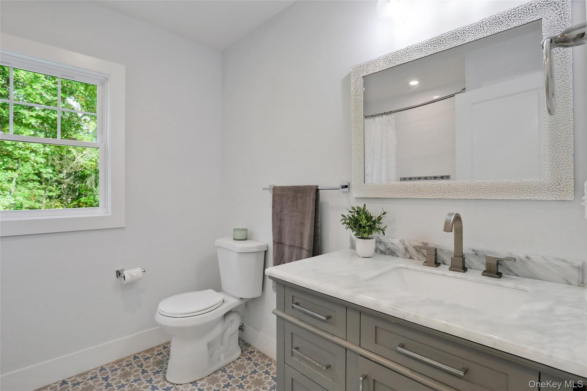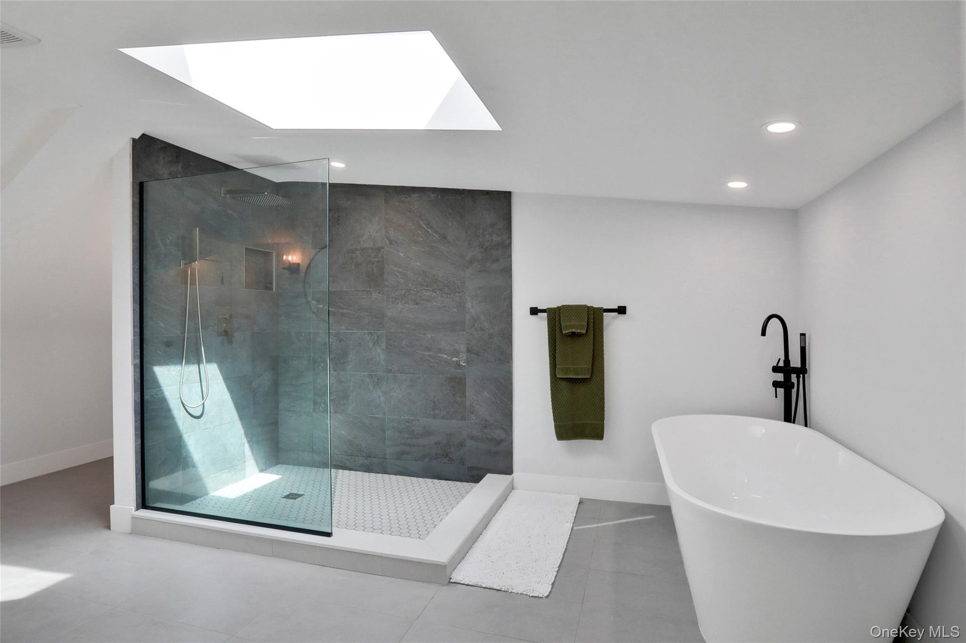 Inside, the intuitive layout naturally guides you through the first floor, featuring two spacious bedrooms and a full bath, along with an open-concept living room with a wood burning fireplace, dining area, and kitchen–outfitted with a farmhouse sink surrounded by quartz countertops and stainless steel appliances. Sliding glass doors lead to a deck overlooking the private backyard—perfect for morning coffee or evening entertaining. The second floor is dedicated to a grand primary suite, where you’ll find a spa-like bathroom bathed in natural light from above with a soaking tub, large shower, and double sinks.