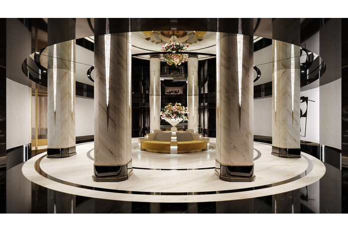Designed by internationally acclaimed designer Jean-Louis Deniot, residences combine modern comfort with signature features such as a dedicated Concierge Closet and keyless entry with opulent details like ceiling coves, herringbone floors, oversized custom-paneled doors, spacious walk-in closets, and grand entry foyers with marble floors and brass inlays.
