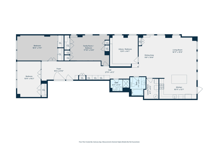 Enter directly into this lofts private landing with a wall of closets along a wide hallway leading to the open Living/Dining/Kitchen and the den with South and East exposures and skyscraper views. The soaring ceilings and oversized windows provide the space with impressive grandeur. The huge open Kitchen features wood cabinetry, a Sub Zero refrigerator, Bosch dishwasher and GE 5 burner stove and microwave. On the North side of this home are the two bedrooms. Two full baths and a large laundry room complete this wonderful home.