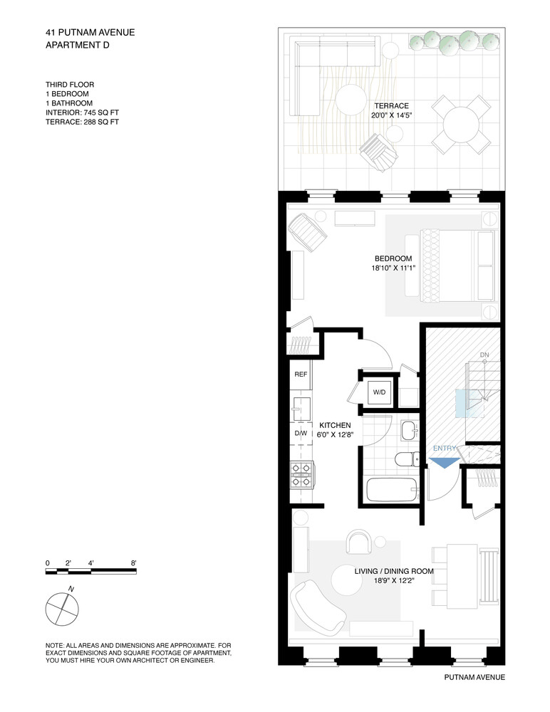 1 Bedrooms 1 Bathroom Private Terrace Sundrenched Living Room Welcome to 41 Putnam Avenue, three residences offering refined living on one of Clinton Hill's best blocks.