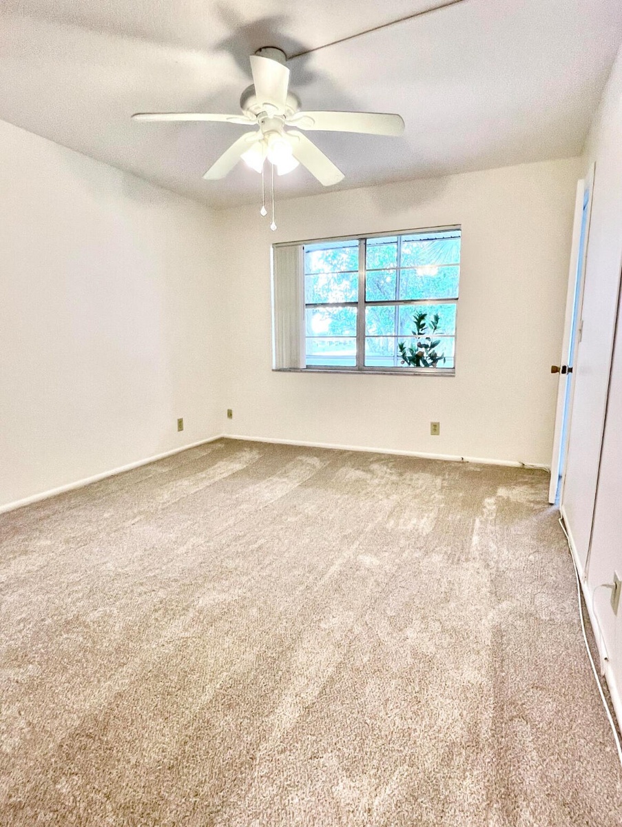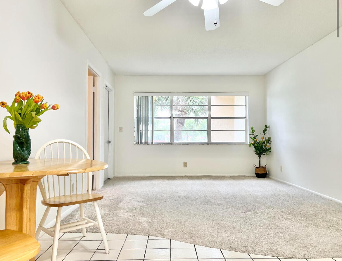 Sweet and cozy, second floor, corner unit tucked away in beautiful Golden Lakes Village. The kitchen has a large pantry, new granite countertops, and new appliances. The generously sized and includes a large walk-in closet with wooden shelves. The bathroom includes a modern vanity. Brand new carpet in both the living room and bedroom recently installed. Enjoy the private, covered porch with water and lush foliage views. Golden Lakes is a highly desirable neighborhood with close proximity to Florida's turnpike, I95, Palm Beach, Kravis Center, and countless shops and restaurants. The community offers a library, card room, pool, hot tub, fitness center, shuffle board and bocce courts, and a lovely clubhouse. Basic cable and water included in the monthly fee.