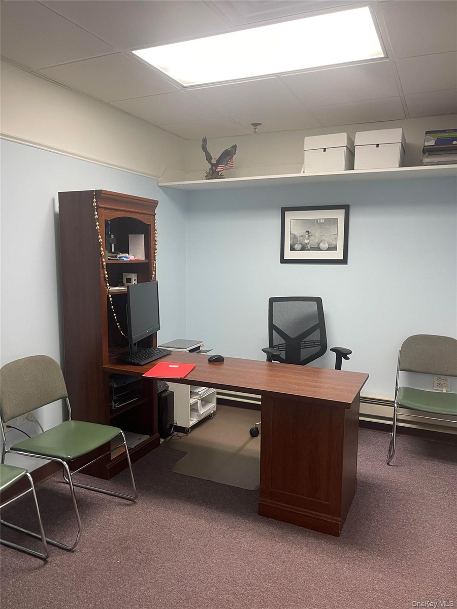- Carpeted office with a paneled ceiling