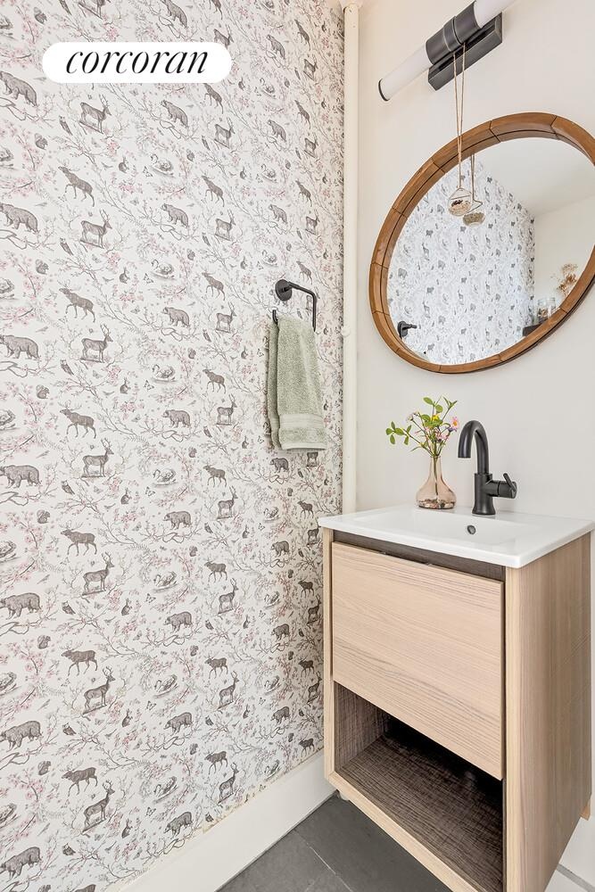 Upstairs, four bedrooms await, each with oversized windows, treetop views, and generous closet space. The serene primary suite includes an en-suite bath, while a second renovated bathroom with dual sinks serves the additional bedrooms. The lower level offers incredible versatility with high ceilings, custom flooring, a full bath with soaking tub, laundry, and direct access to the backyard. Currently configured as a recreation room, it easily accommodates a home gym, children's play area, and media space.