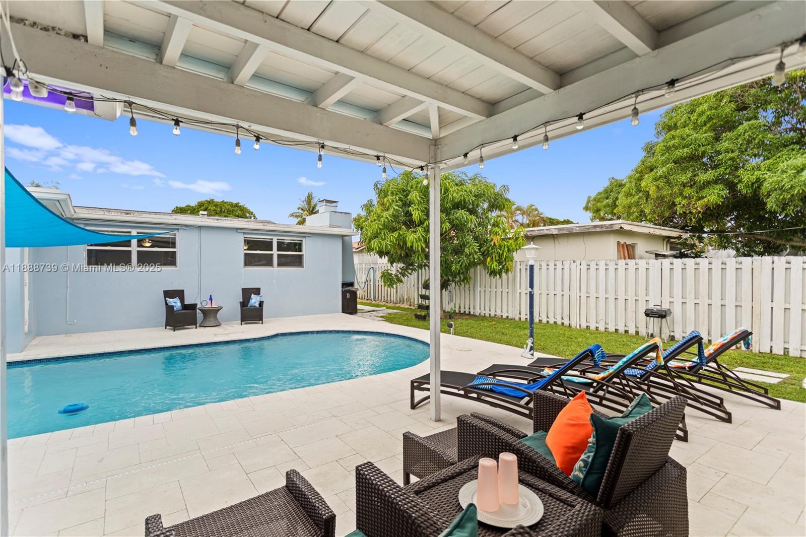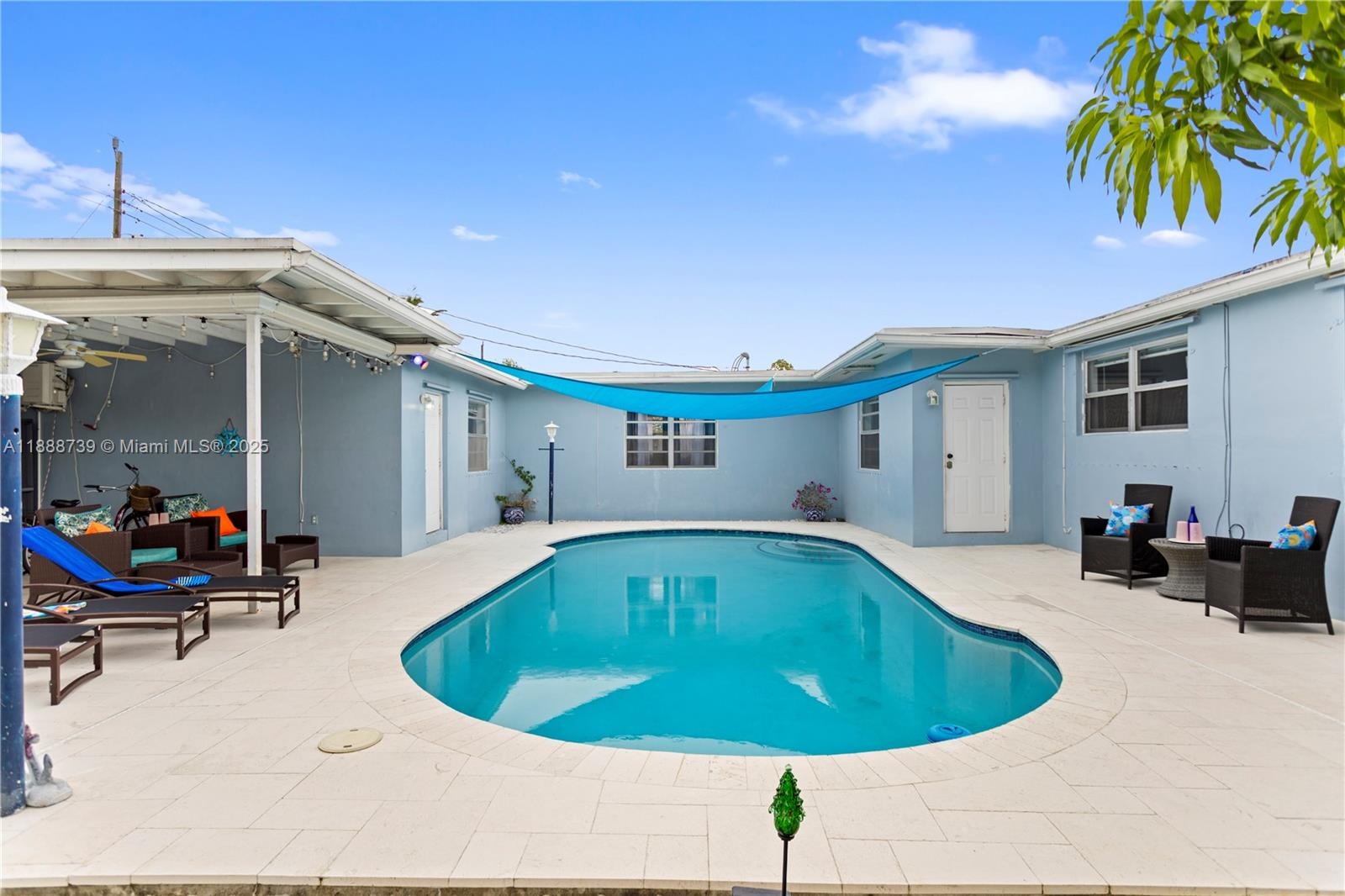 Discover the allure of one of Hollywood Hills' most beautifully maintained streets with this home. Spanning over 2,500 sq ft, offers a thoughtfully designed living space perfect for comfort and entertaining. Step into the private, gated backyard oasis, featuring a stunning pool ideal for relaxation and gatherings. Inside, you'll find 4 spacious bdrms and 3 full baths, including 2 master suites—one tailored as a cozy in-law suite. The family room boasts a fireplace and connects to a den that can easily convert into a 5th bedroom. Additional highlights include a laundry room and a charming front porch overlooking a circular driveway with ample parking, plus a service alley behind the home. Recent upgrades, including a new roof, provide peace of mind in this meticulously maintained residence.