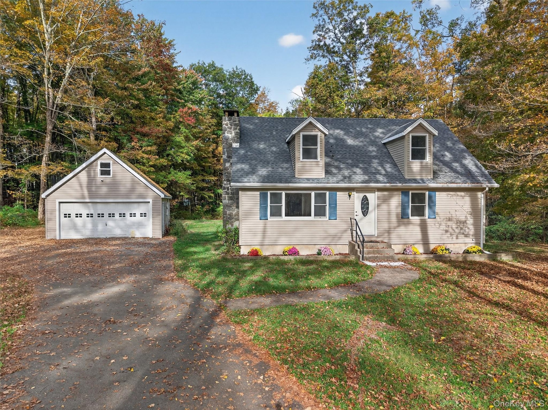 PEACE. PRIVACY. PROXIMITY. It's all here in this picture-perfect Cape Cod nestled among serene woods, yet just minutes from everything. Move-in ready and meticulously maintained by the same 20-year owners, this charming residence invites you to relax - NOT renovate! Set on a level 2.5 acre lot, directly across from huge State land acreage, you will find the perfect blend of convenience AND seclusion. Commuting?  you are just minutes to Tuxedo (8.8 miles) or Harriman (11 miles) Train Stations. Step inside to an inviting open floor plan where the focal point of the living/dining area is a stunning stone wood-burning fireplace.  Gleaming hardwood floors welcome throughout most of the house, and don't worry - there is no carpeting! The upgraded kitchen has stainless steel appliances, abundant maple cabinets, granite countertops + convenient island, with a unique tile floor. With four generously sized bedrooms (two upstairs, two downstairs) and full tiled bathrooms on each level, there's plenty of space for everyone.  The partially finished basement, with Bilco door access, offers laundry area with LG TROMM washer/dryer, bonus room and a huge walk-in closet perfect for long-term storage. The pristine two-car detached garage with electric door openers includes a loft area. Hosting a gathering? Enjoy the extra parking room provided by the convenient circular driveway.  Enjoy your own private paths throughout the magical woods that surround your home, including a stream that bisects the property. There's also ample space for gardening, outdoor activities, or simply soaking in the tranquility on the back deck.  And you can't beat this "hidden" location -- just  two miles to bustling Greenwood Lake; three miles to the top of Mt. Peter (and nationally award winning ice cream!) not to mention the renowned Appalachian Trail. Plus, the vibrant Village of Warwick with its restuarants, wineries and cultural activities is less than 8 miles away.  If School districts are of concern, this address qualifies for Greenwood Lake Elementary/Middle schools with HIgh Schoolers having the option between Warwick or Chester. Are all the boxes checked now? If the answer is YES, don't wait to make this dream home yours.