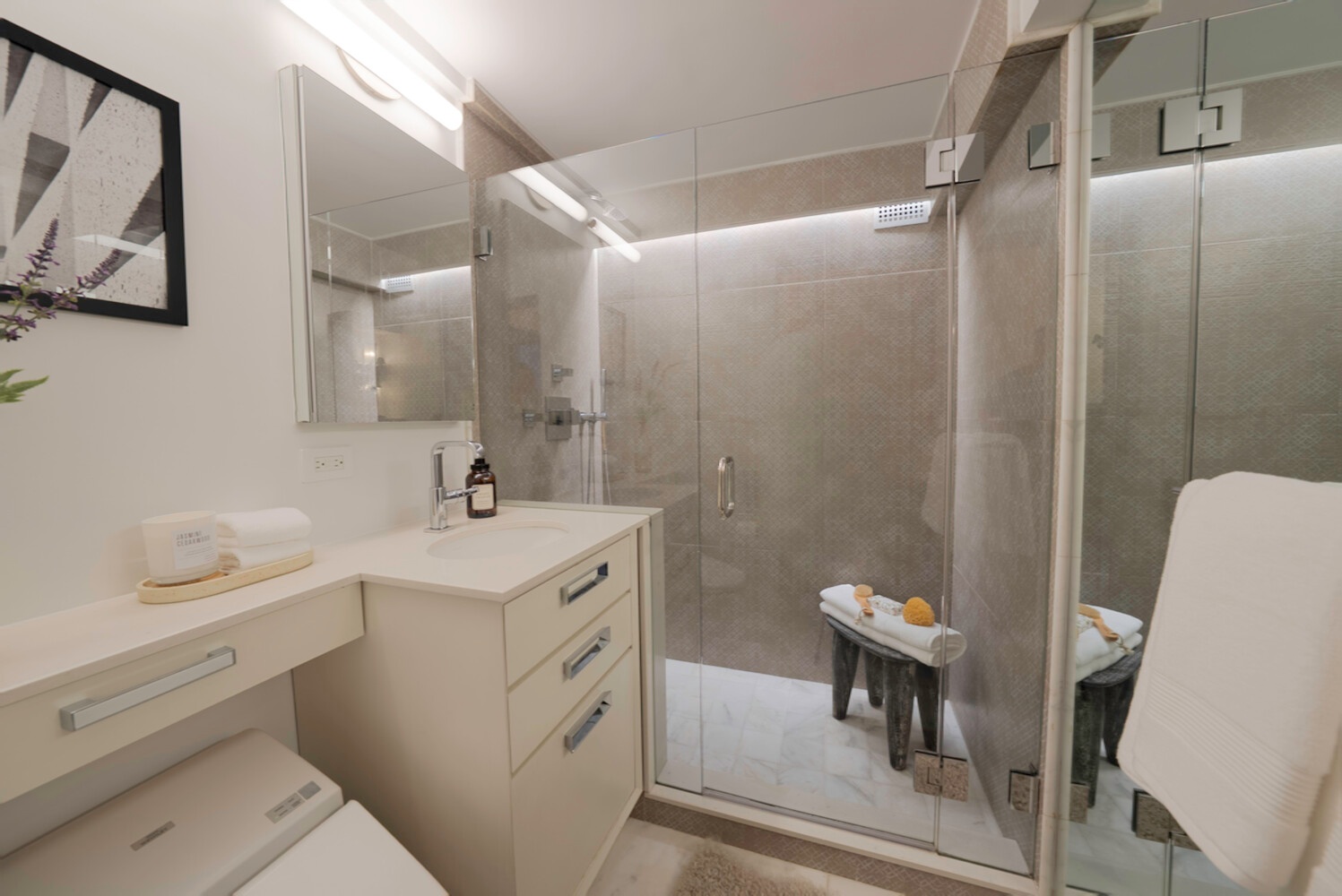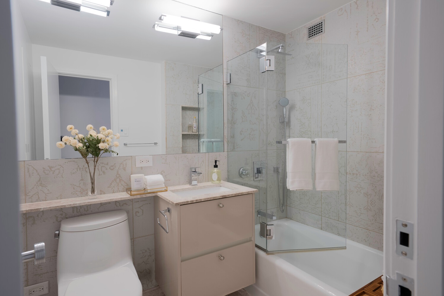 Located in one of the Upper East Side's most desirable full-service condominiums, one block from Central Park, residence 6F at 40 East 78th Street is a beautifully designed two-bedroom, two-bathroom home offering refined proportions, modern conveniences, and sun-filled rooms with west-facing exposures overlooking Madison Avenue. A stunning Silverstone Marble entry foyer introduces the home and flows naturally into a spacious living and dining area, perfectly suited for both entertaining and comfortable everyday living. Oversized windows frame open views and bathe the space in natural light throughout the day. The open chef's kitchen, designed by the acclaimed Pavarini Design, balances elegance and function. Appointed with quartz countertops, sleek custom cabinetry, and appliances by Bluestar, Thermador, and Bosch the kitchen is as stylish as it is efficient. Sleek custom cabinetry, thoughtful storage including a very large pantry, and sophisticated finishes make it a centerpiece of the home. The primary suite is serene and spacious, featuring abundant closet space, including a grand walk-in, custom cabinetry, and a luxurious ensuite designer Carrara marble bathroom, designer vanity, and marble walk-in shower. The second bedroom is equally spacious and offers versatility as a full-sized bedroom, home office, or den. The gorgeous second bathroom is complete with Silverstone Marble, a shower/tub combo, and custom vanity. Additional highlights include wide-plank (7") Mythic European oak flooring, Lutron lighting with timers, bespoke built-ins throughout, thru-wall AC, and a classically design aesthetic that reflects the work of one of New York's most distinguished interior designers. A rarity off Madison Avenue, The Charles House Condominium was built in 1956 and is one of the only full-service condominiums near Central Park. Standing 17 stories and 102 units, the building offers every convenience: 24-hour doorman and concierge, live-in superintendent, fitness center, bike room, laundry facilities, and an on-site garage with parking. Perfectly positioned near Central Park, world-class restaurants, designer boutiques, cultural landmarks, Museums, and the best of what the Upper Eastside has to offer, this unique home presents a rare opportunity to live in an exquisite home infused with designer quality and timeless sophistication.