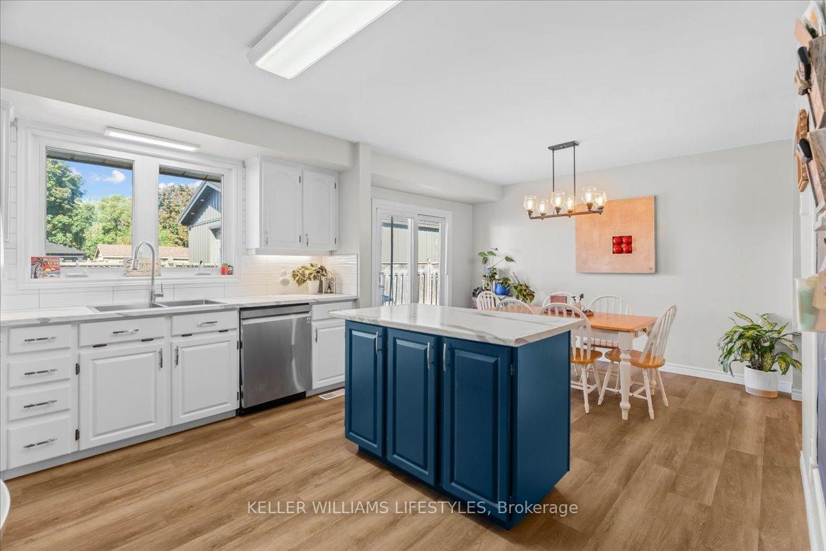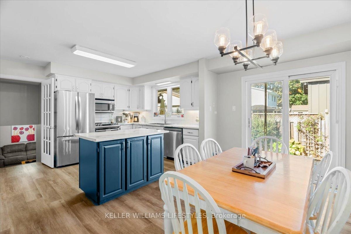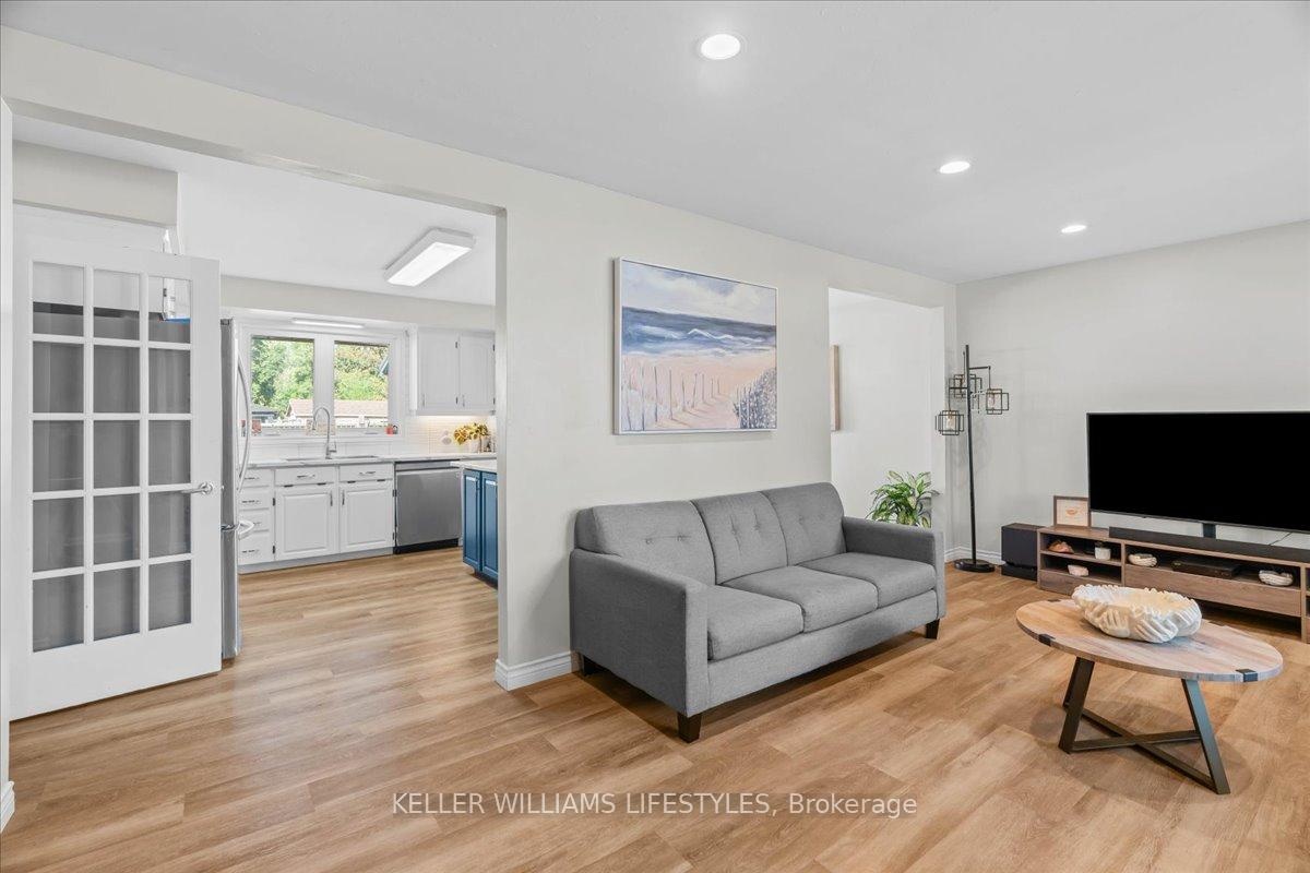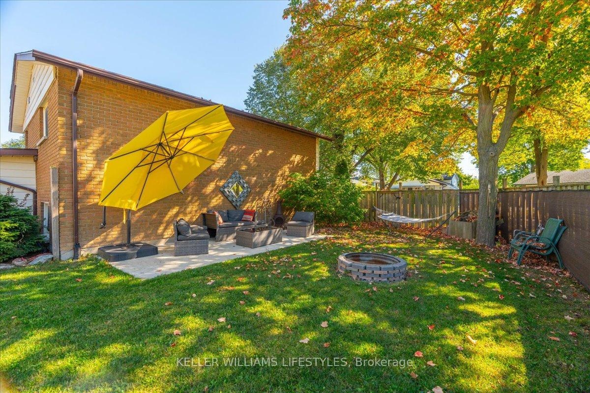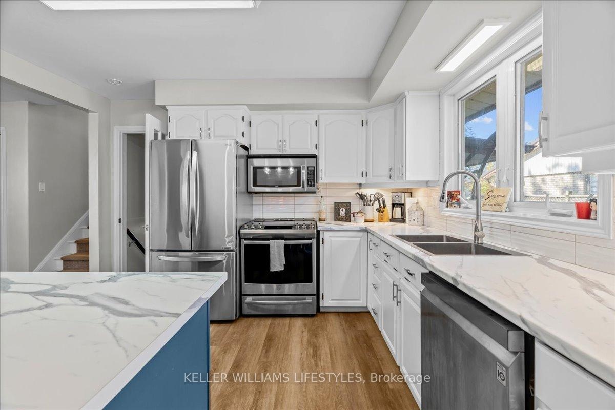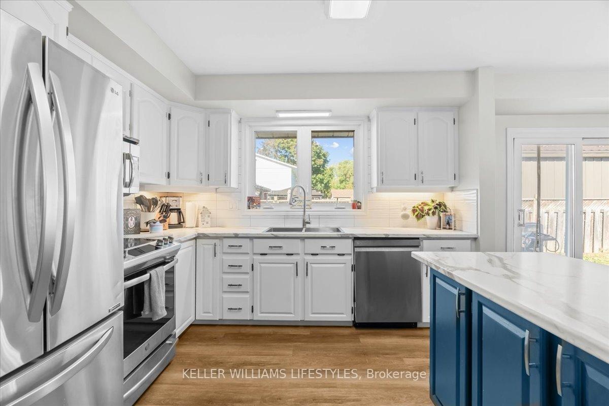 Opportunities like this dont come often. This stunning four-level side split has been beautifully updated and delivers everything, from an open-concept layout filled with natural light to a private backyard retreat designed for entertaining. The heart of the home is the updated kitchen with solid oak cabinetry, modern finishes, and a statement island, while patio doors connect seamlessly to stamped concrete patios and a fully fenced yard. Upstairs, three spacious bedrooms and a sleek four-piece bath provide comfort and style, while the lower levels offer incredible versatility with a second living room, walkout access, a two-piece bath, and a generous primary suite with plenty of storage. An additional level adds even more space for a home office, or playroom, the options are endless.What truly sets this property apart is the rare drive-through double-car garage with a triple-wide driveway, giving you unmatched parking and storage options in this neighbourhood. Set on a landscaped corner lot with a welcoming covered porch and surrounded by schools, shopping, and quick highway access, this move-in ready home is a rare chance to secure not just a property, but a lifestyle.