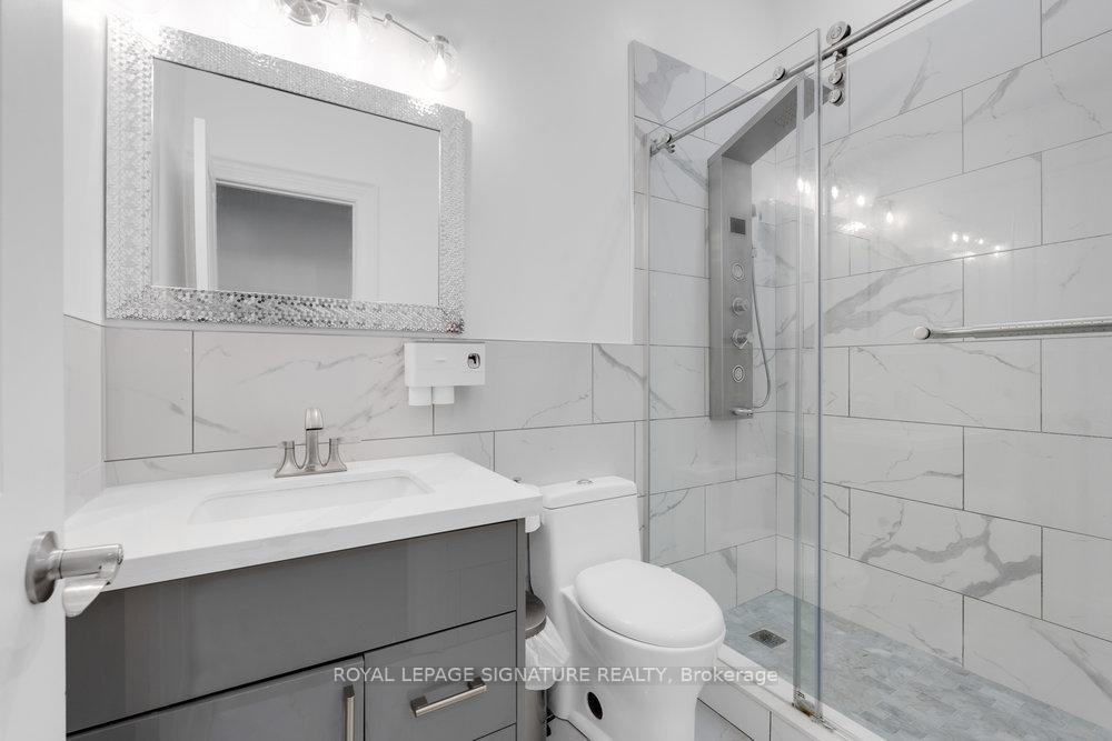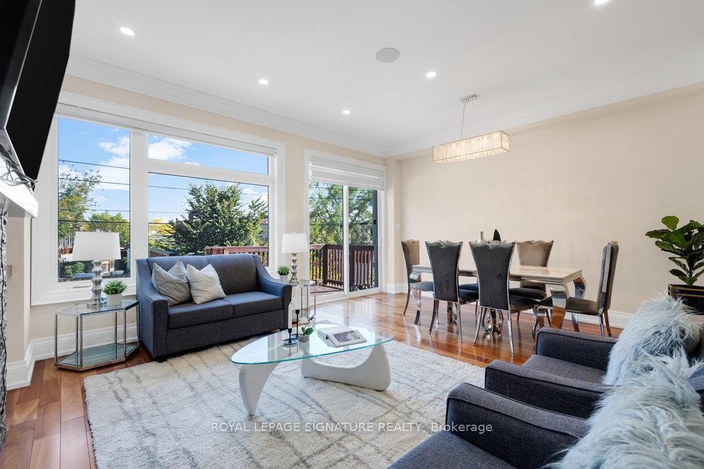 Welcome to a lavish, custom-built, 4+2 Bed and 5 bath residence that seamlessly blends modern luxury, timeless style, and thoughtful design, offering 2,162 sq. ft. above grade with a large backyard featuring an interlocking stone patio and full privacy fencing for the ultimate outdoor retreat. Inside, the sun-filled open-concept main floor is designed for both everyday living and entertaining, highlighted by a chef's kitchen overlooking the backyard with a large centre island offering breakfast seating, stainless steel appliances and an abundance of cabinets and storage. The seamless flow into the living room with a grand fireplace and combined dining room with walk-out to the deck makes hosting effortless. Upstairs, the private quarters offer three spacious bedrooms, with the primary retreat boasting a walk-in closet, a secondary custom built-in closet and 5-piece spa-like ensuite featuring an oversized glass shower, soaker tub and large vanity. Four piece family bathroom, laundry facility and a vast skylight are also located on the second level. The finished basement with substantial ceiling height and a separate side entrance provides exceptional versatility as an in-law suite, complete with a second kitchen, recreation room, 2 additional bedrooms, ample storage and a walk out to the backyard. The modern elegance of this property, premium upgrades, and functional design makes this the perfect home to welcome its next family! Located in the coveted neighbourhood of Cliffside, adjacent to Kingston Rd and walking distance to TTC, schools, shopping, parks, Go Train & The Bluffs. Enjoy A Tranquil street with a suburban feel along with city convenience and waterfront amenities!