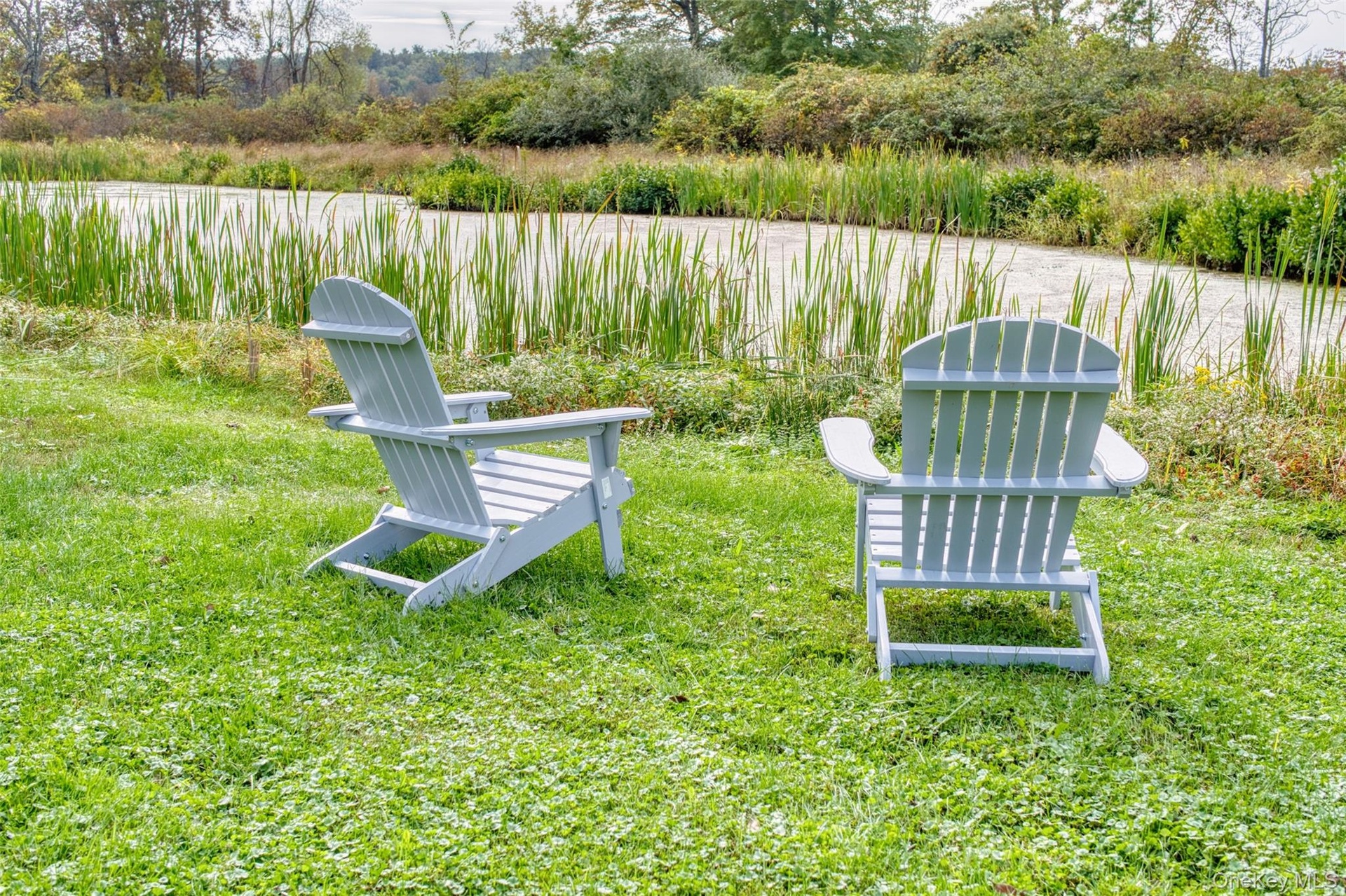 - Adirondack chairs by the pond