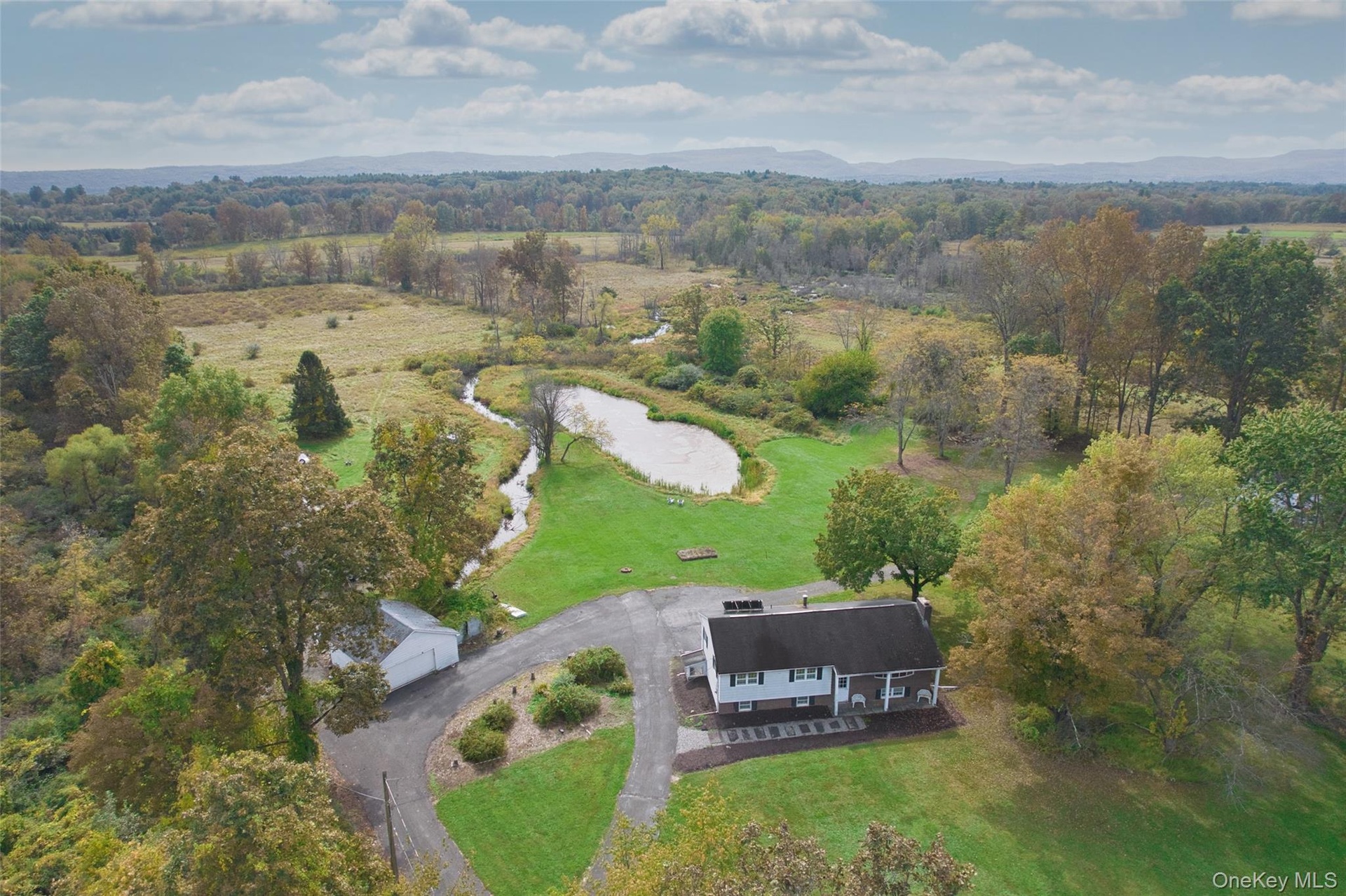 Exceptional 11-acre estate on one of Stone Ridge's most sought-after country roads. This bucolic property features a tranquil pond, lush meadows, and mature trees, offering privacy and scenic views on a picturesque, tree-lined street. Just 5 minutes from Stone Ridge's shops, restaurants, and services, it combines peaceful countryside living with convenient access to amenities. The property includes twin parcels offering multiple possibilities, including construction of one or more additional houses. The existing main home sits on 9 sub-dividable acres and includes an ADU with independent septic, well and utilities. A separate 2-acre parcel is also included. The main residence offers wonderful potential with three bedrooms, gleaming hardwood floors, and a second kitchen downstairs that's ideal for a family room or an in-law or guest suite. A screened porch showcases the stunning pond and countryside views, perfect for relaxing or entertaining, with seasonal vistas of Mohonk. Adding significant value, the income-producing ADU features a well-maintained 2-bedroom, 1-bathroom manufactured home. This provides excellent opportunities for rental income, extended family housing, or future development. Additional amenities include an attached 1-car garage, detached 2-car garage, and generous barn structure, while the expansive grounds invite gardening or recreational pursuits. Located in charming Stone Ridge, renowned for rolling farmland and historic stone houses, this property sits just 90 minutes from NYC with easy access to the Catskills, Hudson Valley, and major routes. It's a rare opportunity to enjoy natural beauty, income potential, and the serene Hudson Valley lifestyle.