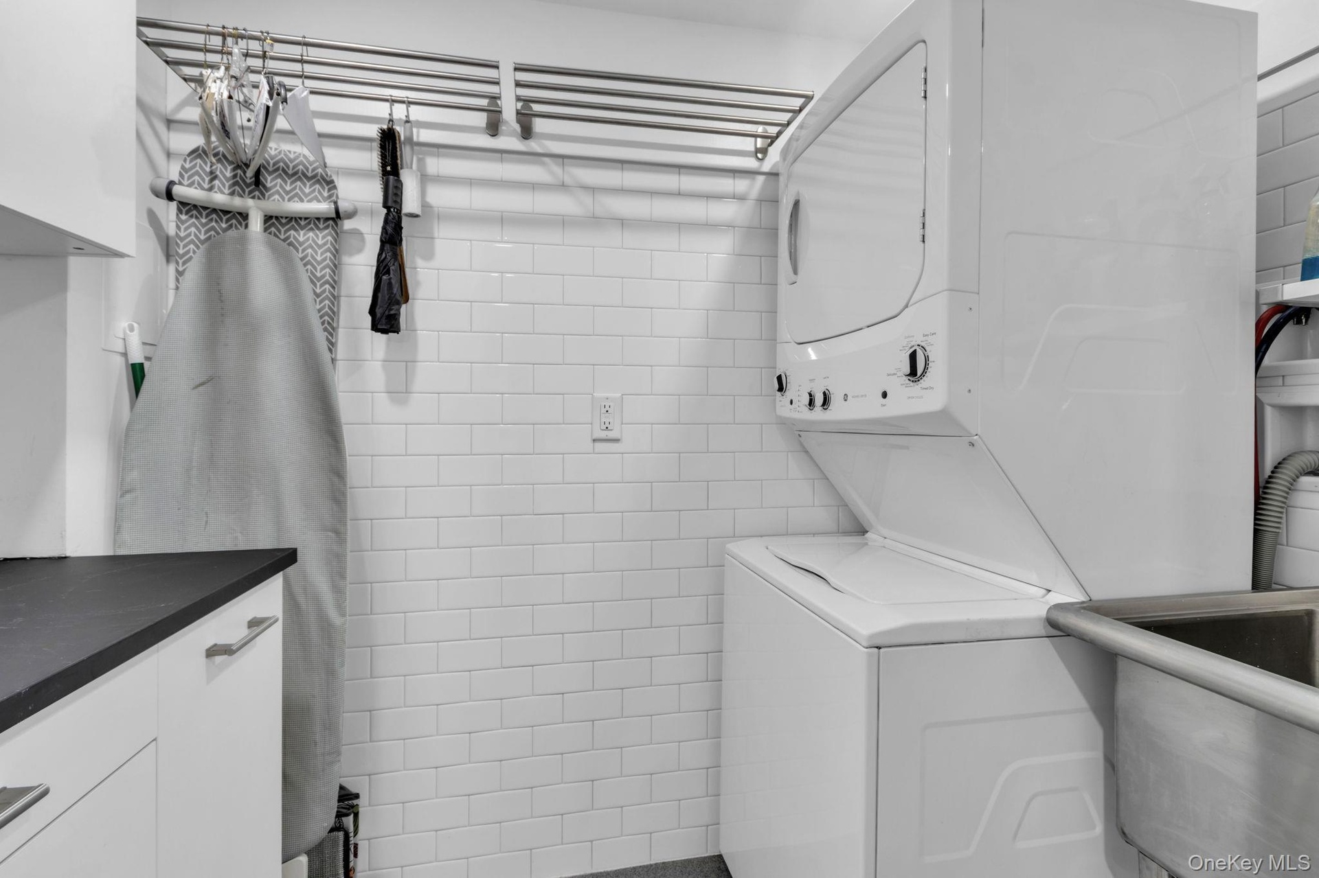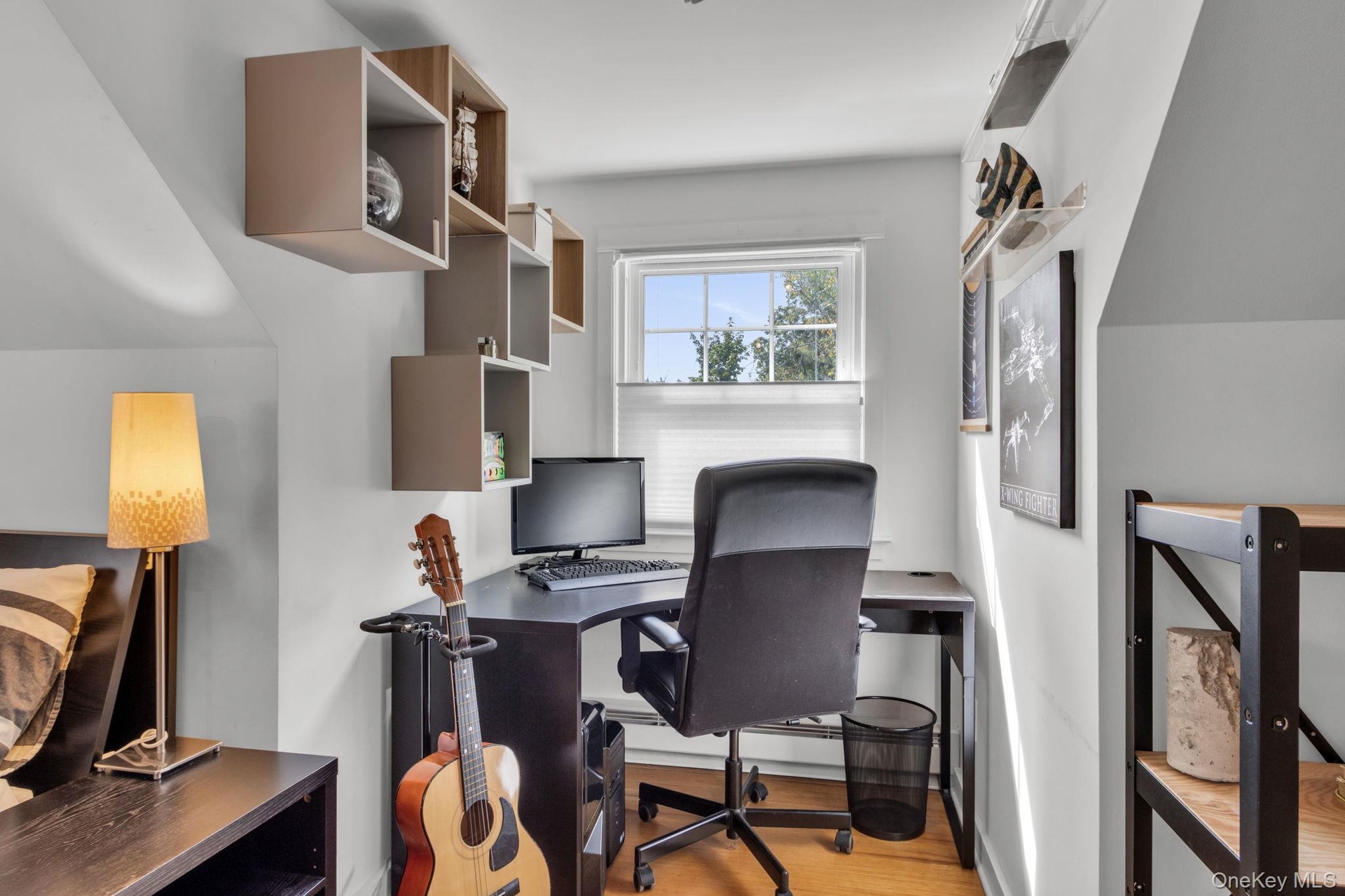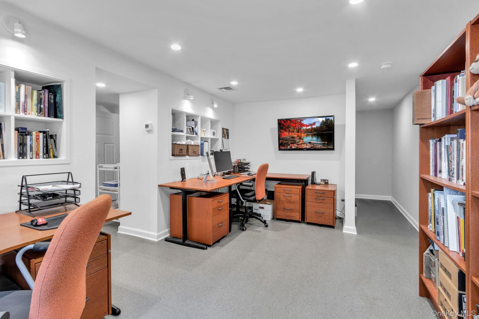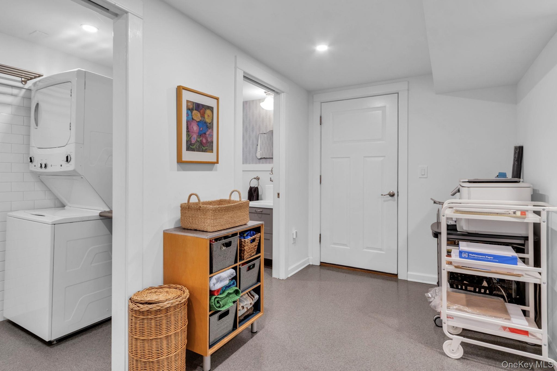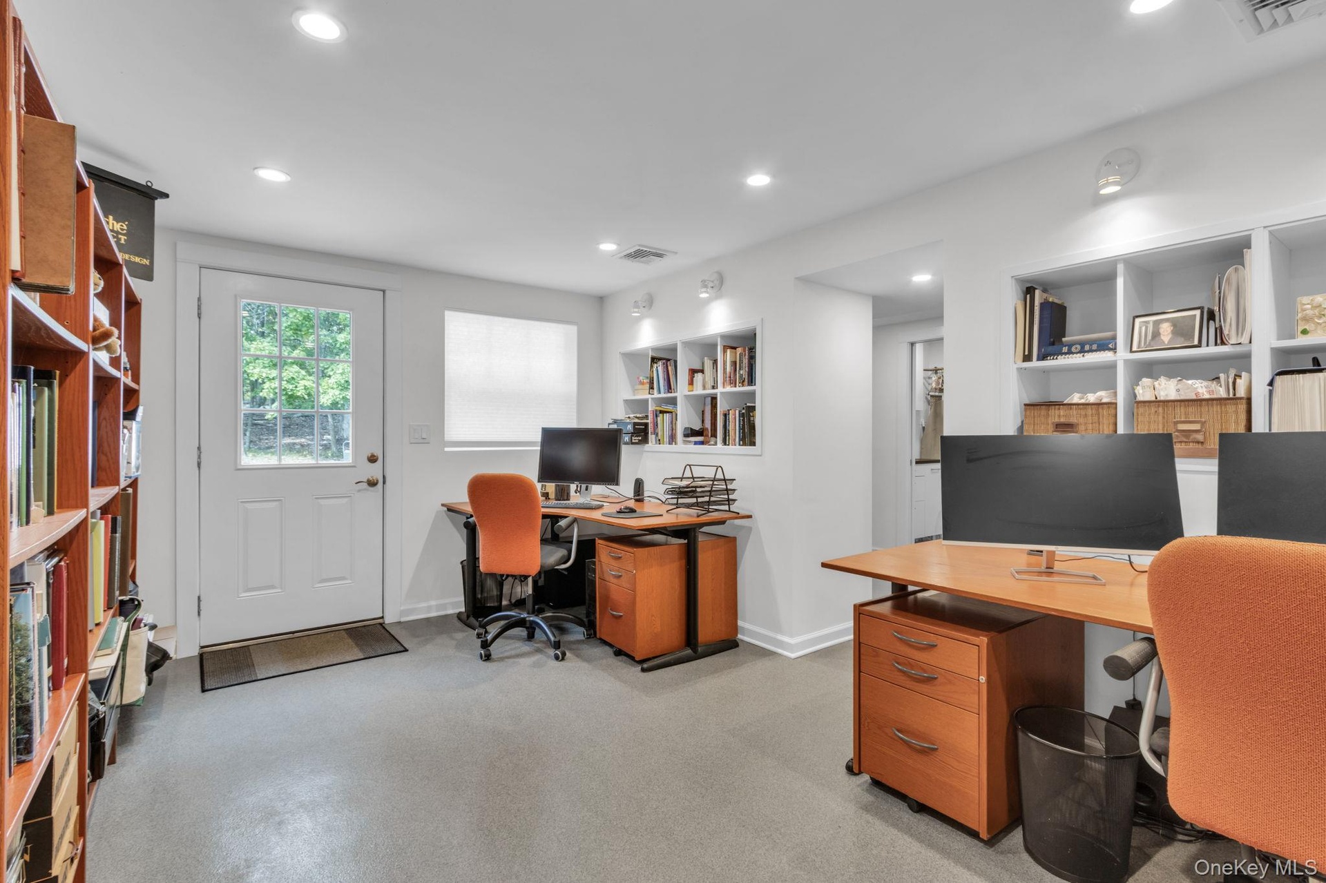 Walkout basement features loads of storage space, a private enclosed workshop, and over 400sf of additional living space, with a bathroom, laundry, and separate entrance from the front that leads directly into an office space. Walkout space beneath the deck is 100% rainproof.