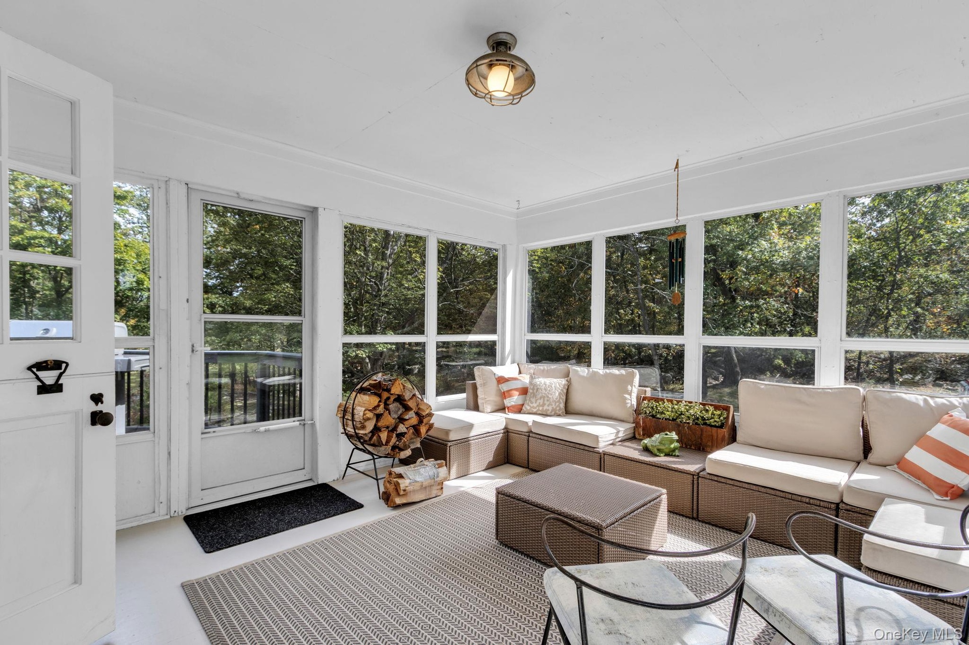 - Sunroom / solarium with plenty of natural light, an outdoor living space, and concrete flooring
