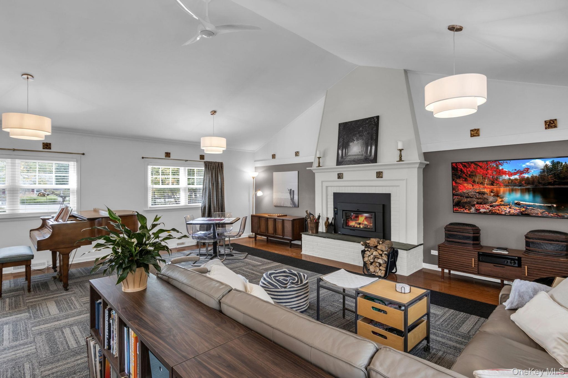 At the heart of the home is the stunning Great Room, where soaring cathedral ceilings and a white brick fireplace create a warm, inviting atmosphere. Whether you're curling up with a good book, enjoying music, or hosting friends and family, this space is designed for relaxation and connection.