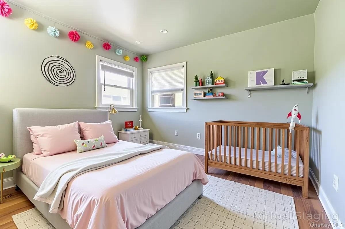 The living room boasts abundant natural light and flows seamlessly into the dining area and kitchen, perfect for entertaining. The kitchen is equipped with ample cabinetry, and appliances, making meal prep a breeze.