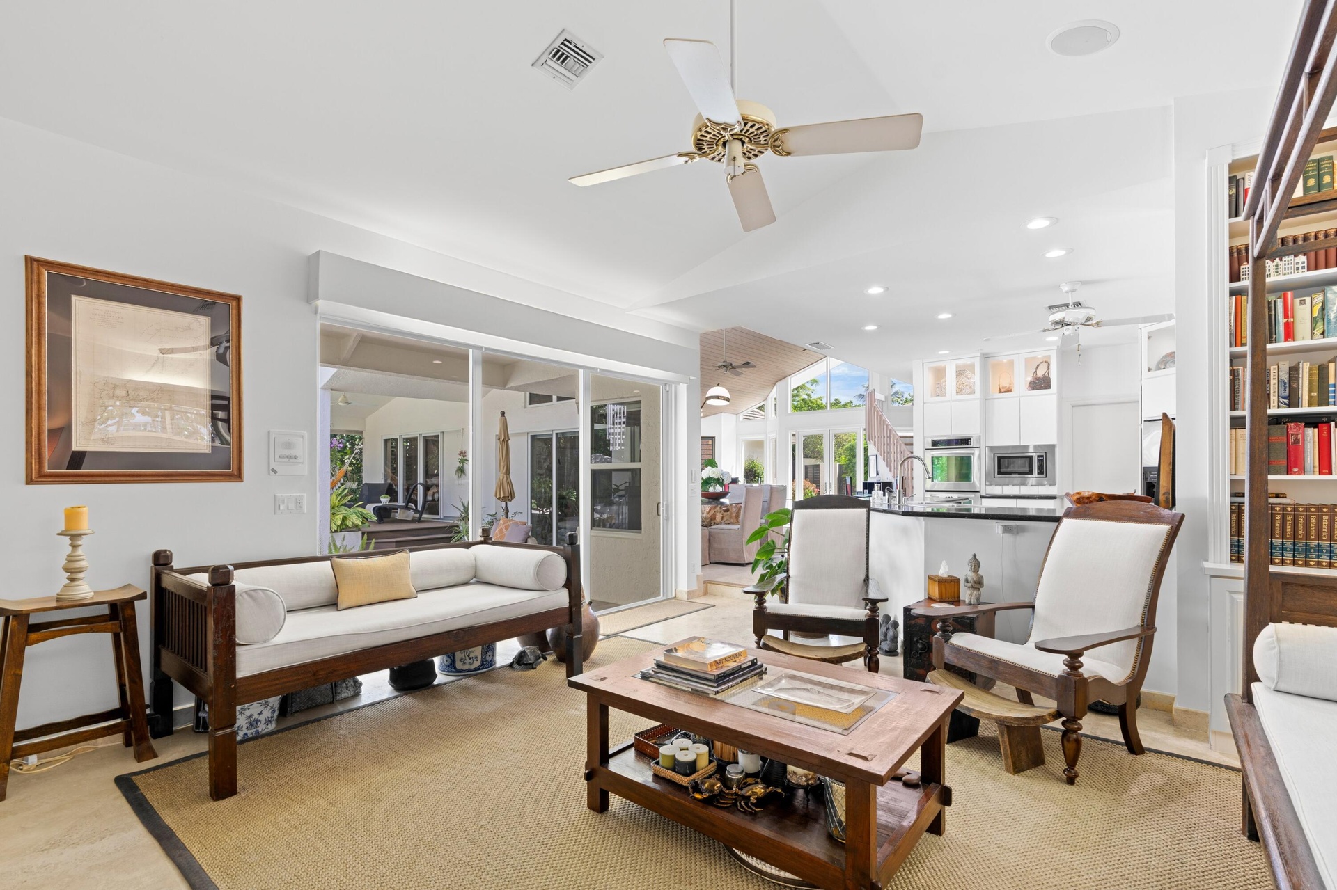 DescriptionExuding coastal sophistication, this lushly landscaped four-bedroom estate in prestigious Ocean Ridge combines modern elegance with timeless design. Dramatic vaulted ceilings, polished Saturnia floors, and a striking stone-mantel fireplace highlight the open living spaces, while walls of glass invite natural light and garden views. The expansive yard, surrounded by tropical landscaping with recent upgrades, creates a private oasis. Just three blocks from the beach, this storm-secure home features hurricane-impact windows and a generator, epitomizing refined coastal living.