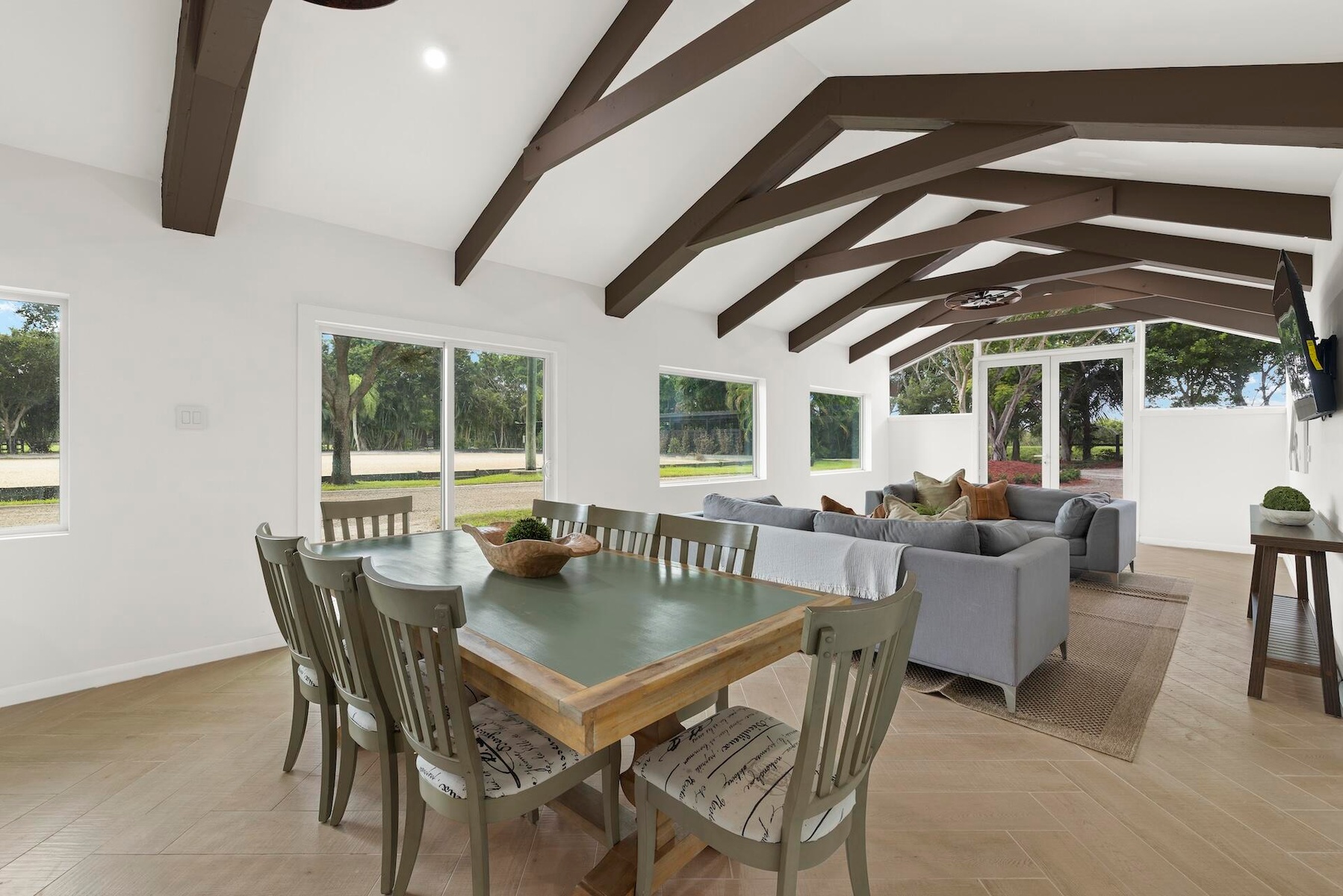 Happy Horse Farms is a rare 11 acre farm in the heart of Wellington. Opportunities like this are few and far between. Featuring a 50+ stall facility with multiple barns, run-in sheds, 8 paddocks, a 400' x 270' stick and ball field, a 275' x 124' clay arena, & four cabins. The recently renovated residence and players lounge provides functional accommodations for staff or management, while the land and the layout present the perfect canvas for a custom luxury equestrian estate. With expansive acreage and extensive infrastructure already in place, the possibilities are endless. Design and build your dream farm exactly as you envision it. Whether for polo, hunter jumpers, or dressage, this property offers the space, location, and potential to become one of Wellington's premier Equestrian