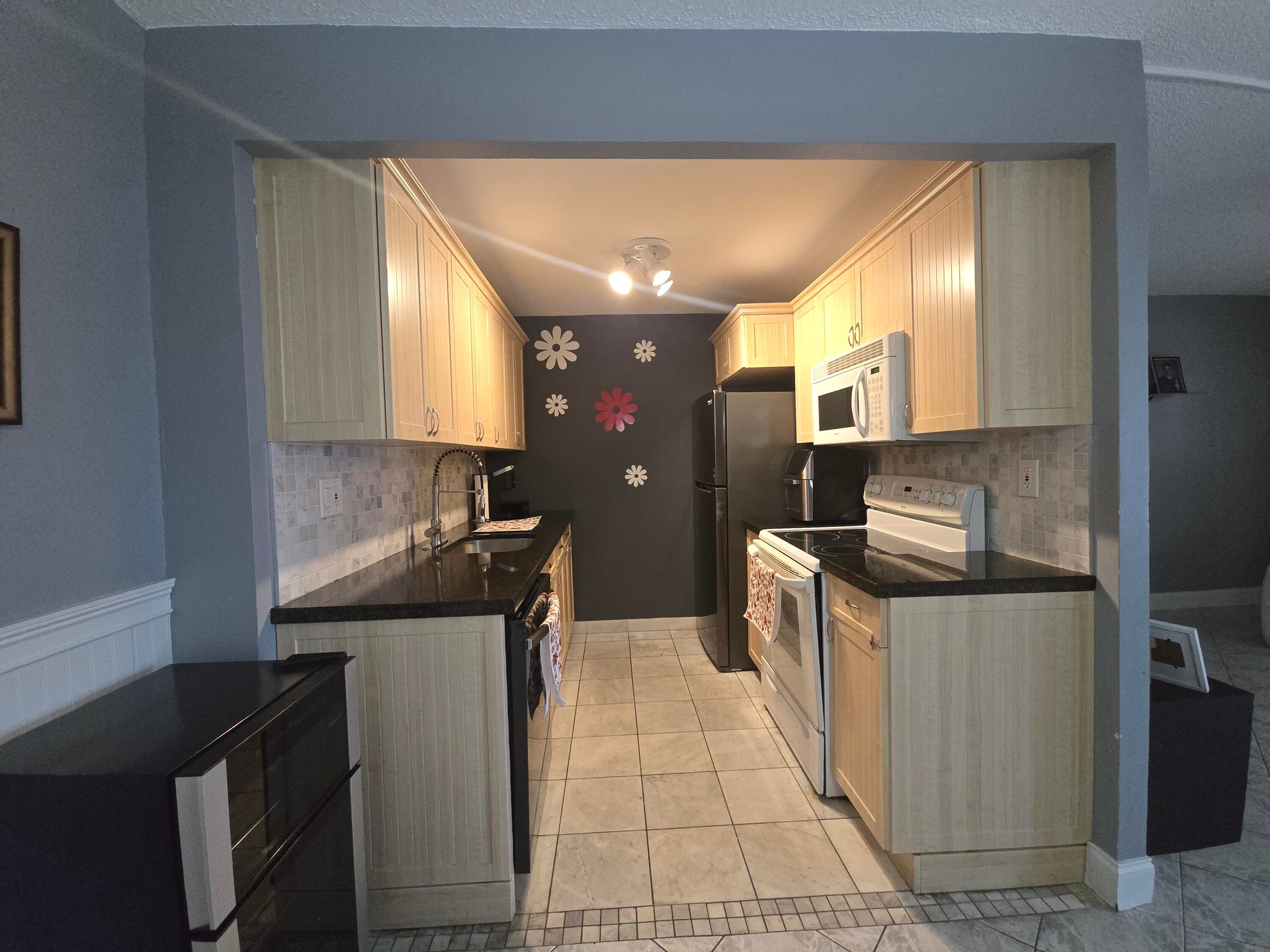 DescriptionDon't miss the chance to own this lovely condo in Century Village. All tile,1 bedroom, 1- 1/2 bath with an oversized bedroom. The updated kitchen features, rich wood cabinets and granite countertops. A convenient Murphy bed is perfect for visiting guests. Recent upgrades include an updated electric panel, 2017 AC, tankless water heater in 2022, plus a new refrigerator and dishwasher in 2022. Relax and enjoy the water view from your private enclosed patio with beautiful laminate flooring. The building also provides a patio by the lake, ideal for peaceful Florida evenings. Century Village offers resort-style living with endless activities, clubs, transportation services, and much more.