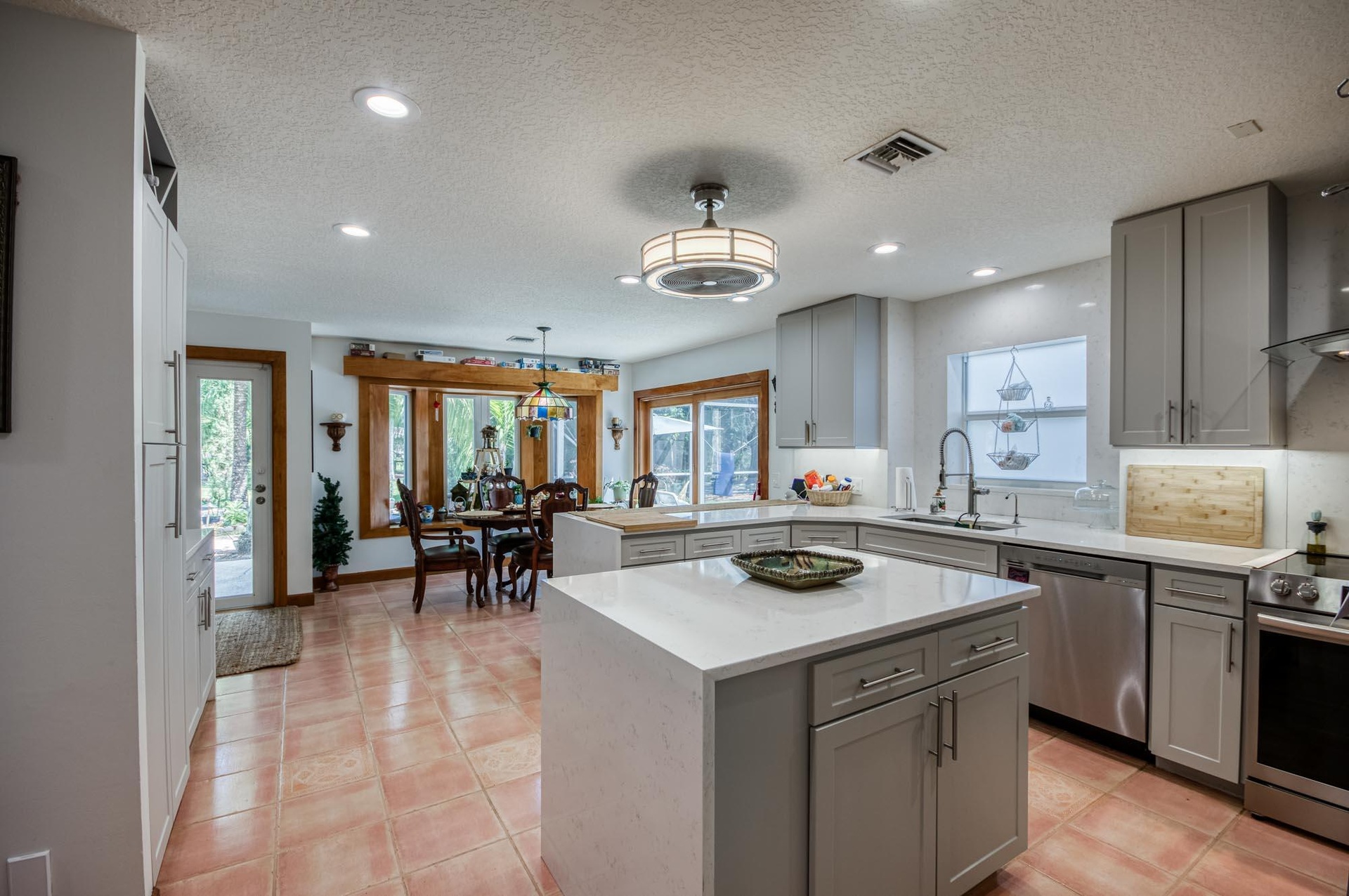Stunning private retreat in Jupiter Farms - this one-of-a-kind estate is nestled on over an acre of serene land and boasts 4-bedrooms, 3.5-baths, a dedicated office, and a tropical backyard paradise! Featuring a thoughtfully designed layout with two primary suites, soaring vaulted ceilings, and a cozy wood-burning fireplace. The fully renovated kitchen and bathrooms shine with white quartz countertops, waterfall edges, and custom cabinetry. Step outside to your personal backyard paradise featuring a 20x40 ft sports pool, over 7 feet deep, with new screening and beautiful pebble tec finish. The expansive backyard is perfect for hosting anything from Thanksgiving dinners to sports - or even weddings! Additional highlights include a massive circular driveway, fruit trees and lush