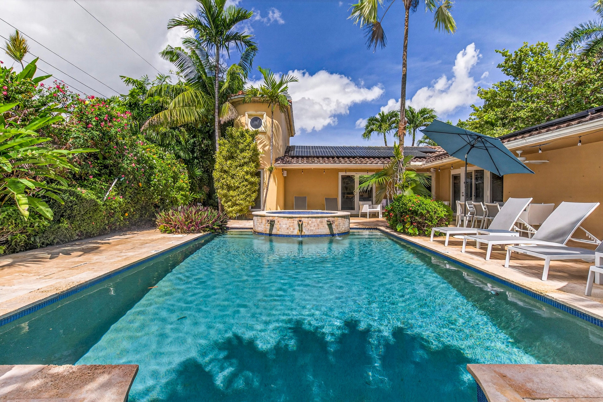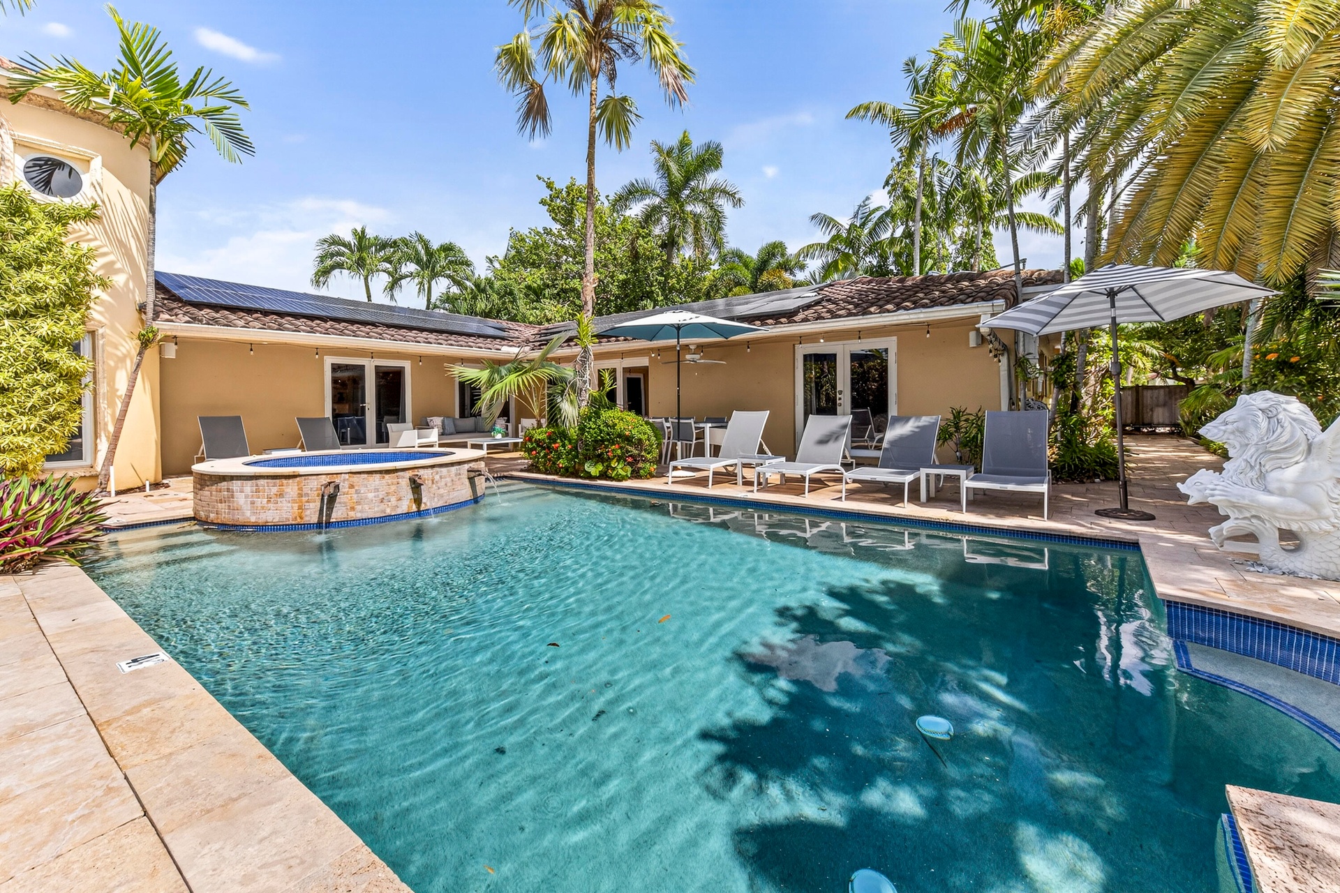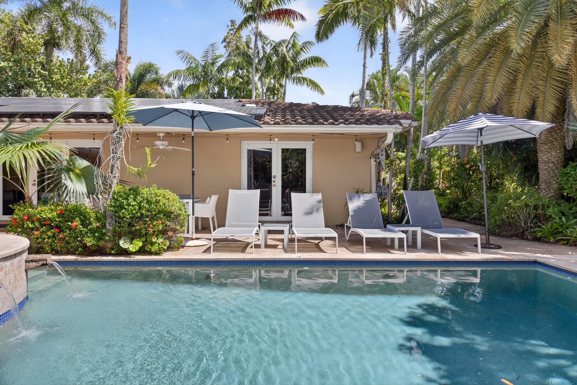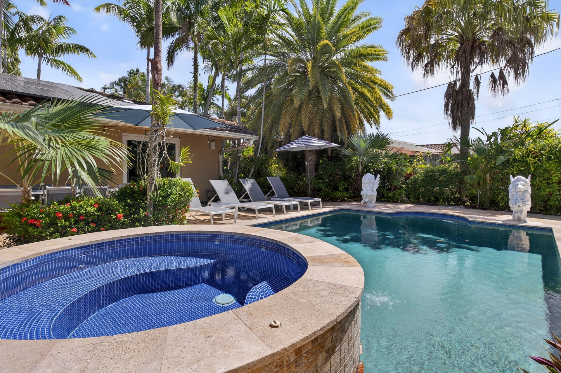 DescriptionDiscover this tropical paradise hidden gem in the heart of Fort Lauderdale. This stylish 4 bedroom, 2 bathroom furnished home features bright, open living spaces, gourmet chef's kitchen, built in closets, and modern finishes. Both bathrooms include walk-in, roll-in showers for comfort, accessibility and a touch of spa like luxury. Enjoy an expansive backyard oasis with sparkling, heated pool, hot tub and extensive outdoor seating, ideal for sun soaked afternoons, evening cocktails or dining under the stars. The front boasts a lush tropical patio with beautiful fountain, creating a serene welcome as well as a wonderful setting for morning coffee or peaceful relaxation. Located minutes from beaches, boating, dining and nightlife, this one captures the best of South Florida living.