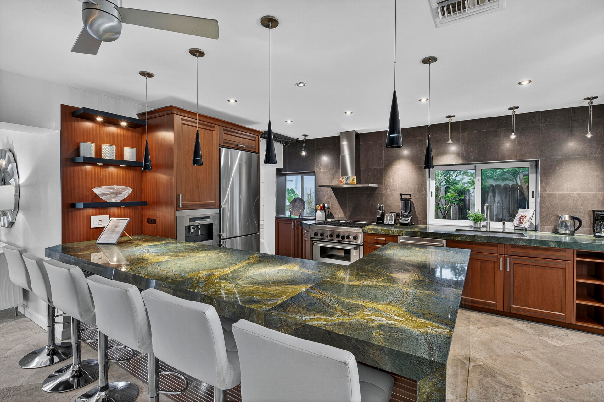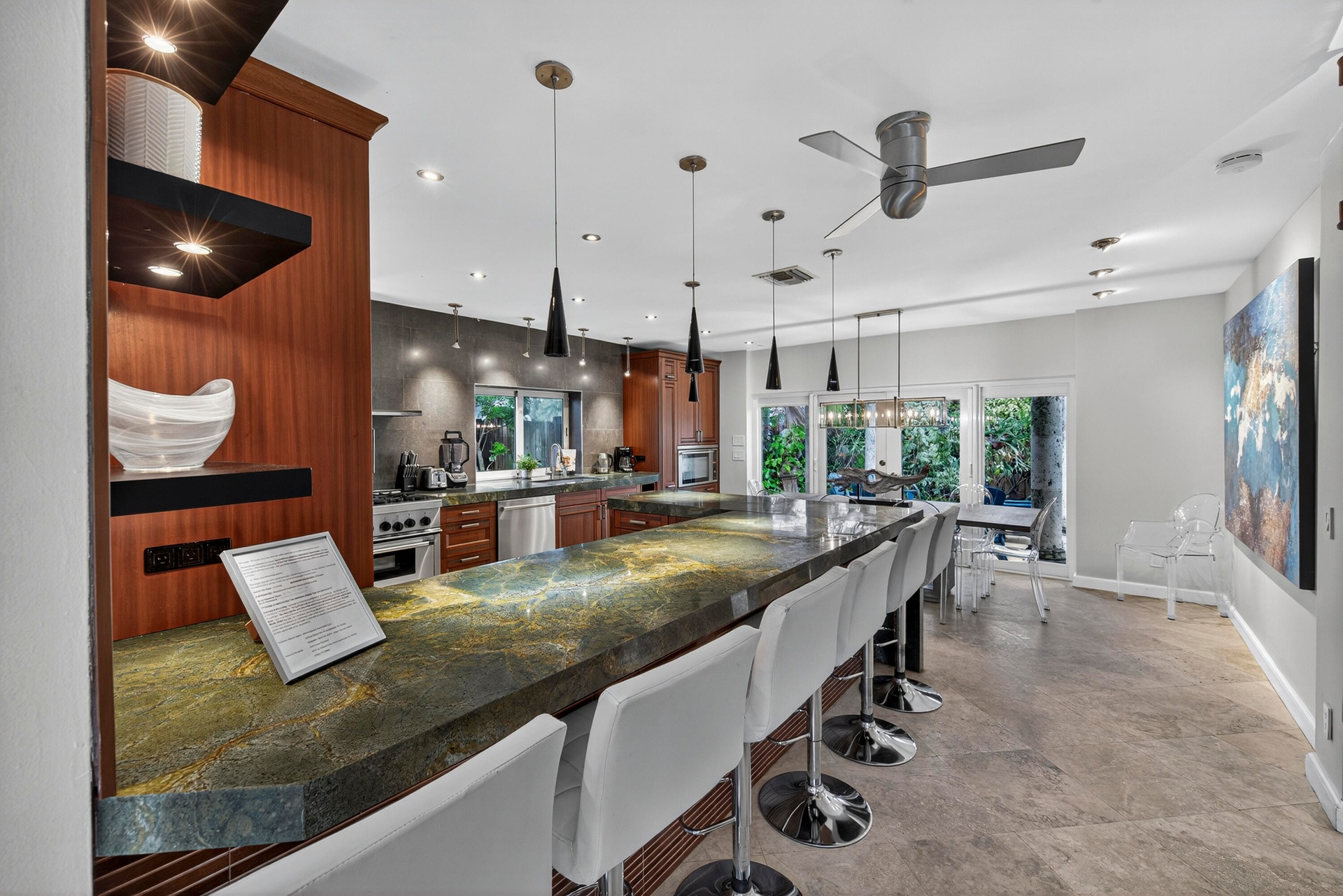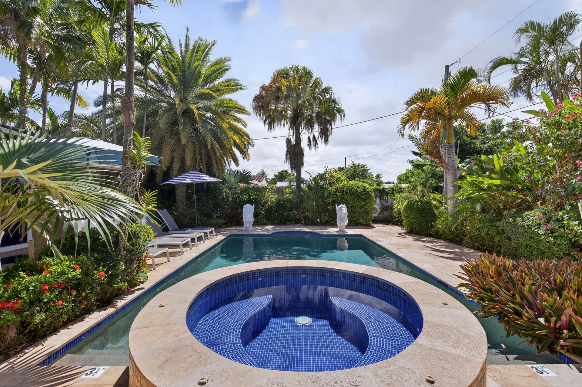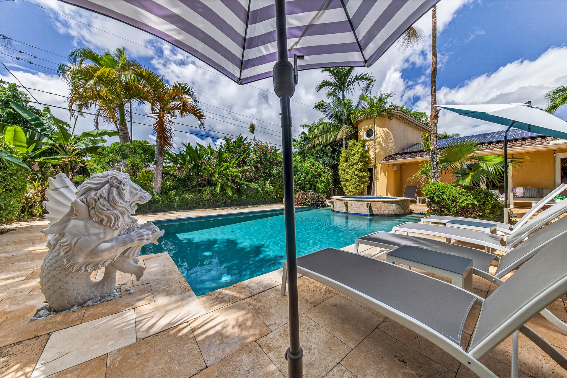 DescriptionDiscover this tropical paradise hidden gem in the heart of Fort Lauderdale. This stylish 4 bedroom, 2 bathroom furnished home features bright, open living spaces, gourmet chef's kitchen, built in closets, and modern finishes. Both bathrooms include walk-in, roll-in showers for comfort, accessibility and a touch of spa like luxury. Enjoy an expansive backyard oasis with sparkling, heated pool, hot tub and extensive outdoor seating, ideal for sun soaked afternoons, evening cocktails or dining under the stars. The front boasts a lush tropical patio with beautiful fountain, creating a serene welcome as well as a wonderful setting for morning coffee or peaceful relaxation. Located minutes from beaches, boating, dining and nightlife, this one captures the best of South Florida living.