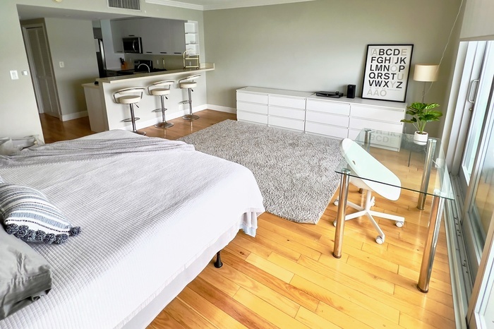 This penthouse studio offers sweeping views of Biscayne Bay, Star Island, and the glittering Downtown Miami skyline. Perfectly positioned in the heart of South Beach, it places you just moments from the city’s energy while providing a serene waterfront retreat.