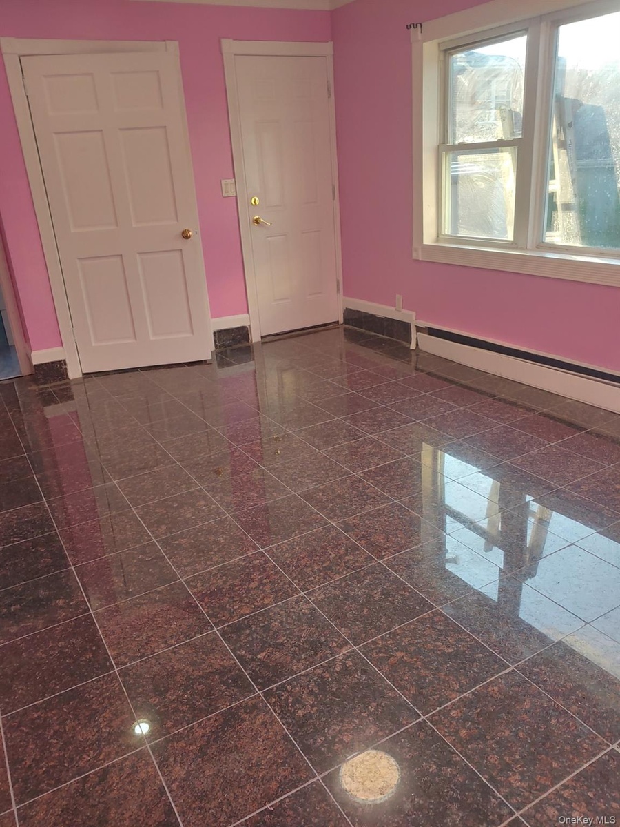 - Spare room with light marble finish floors, a baseboard heating unit, and recessed lighting