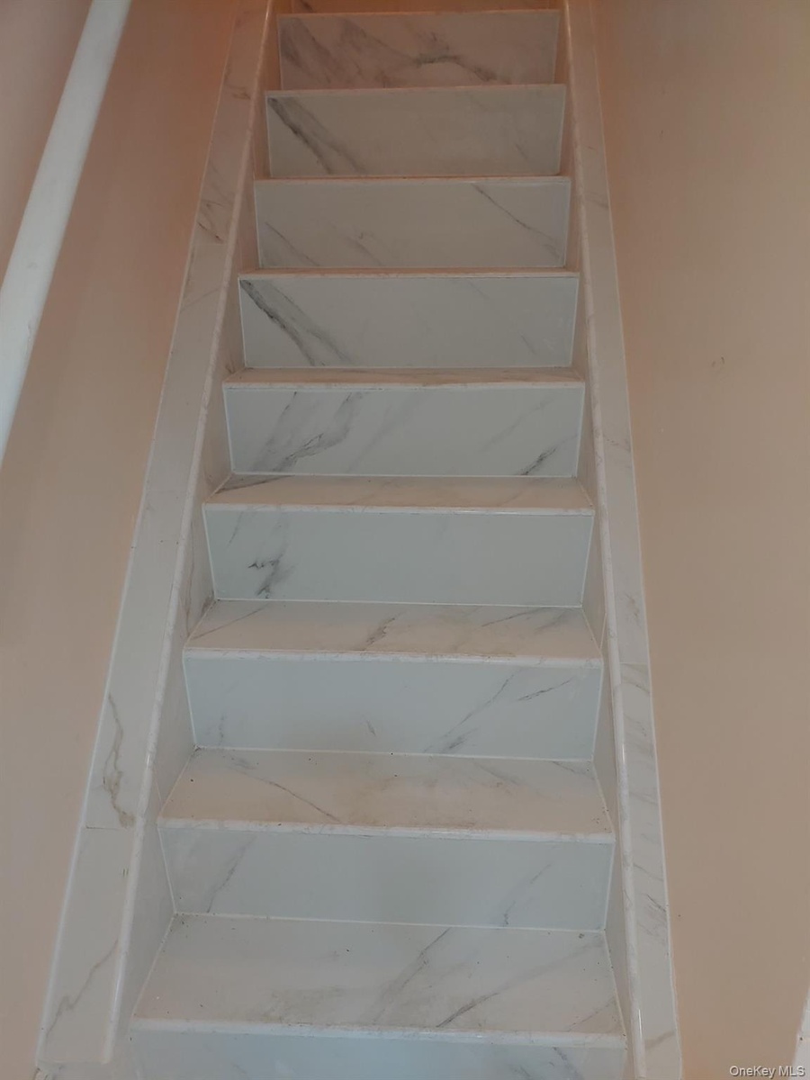 - Finished basement featuring recessed lighting and light marble finish flooring