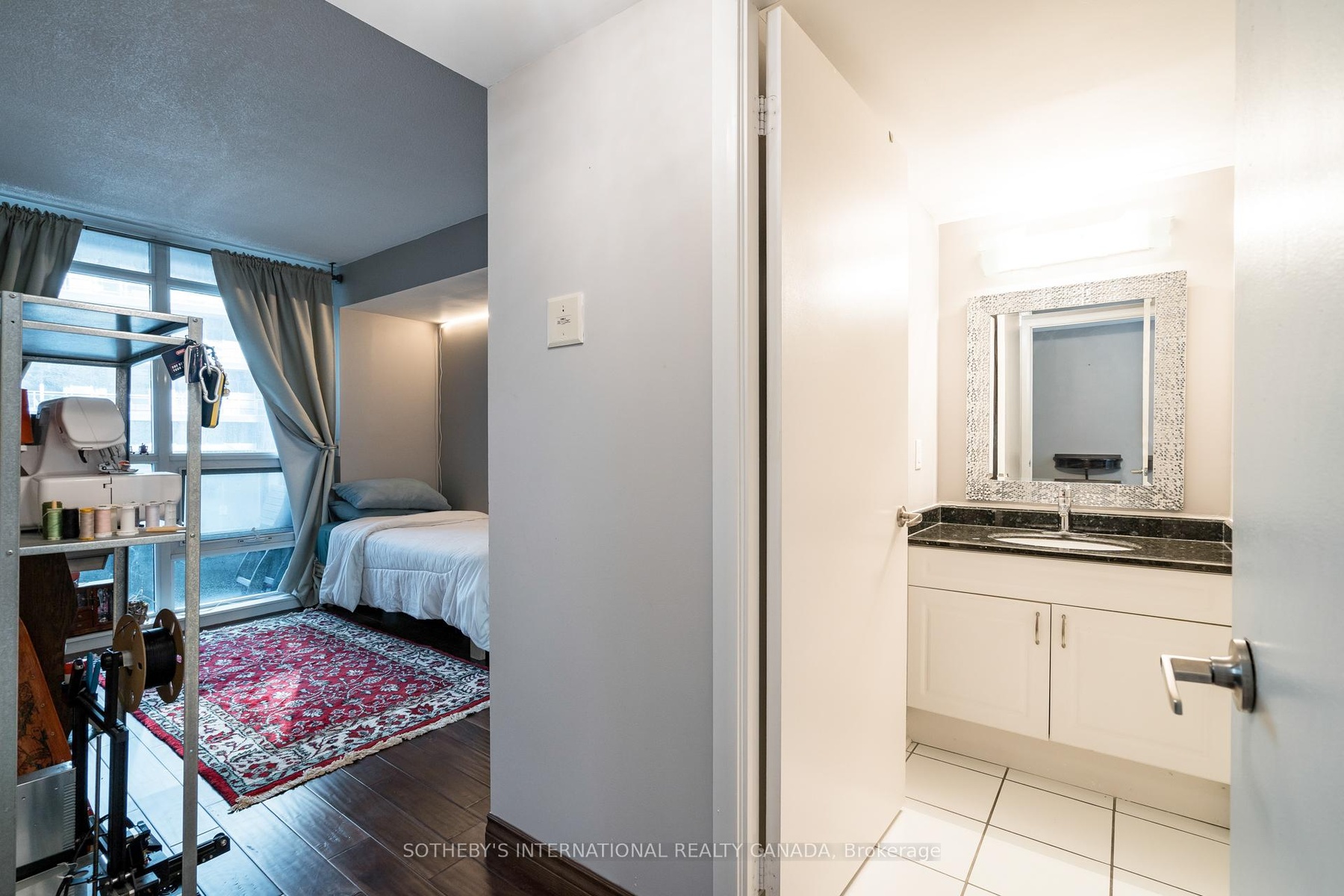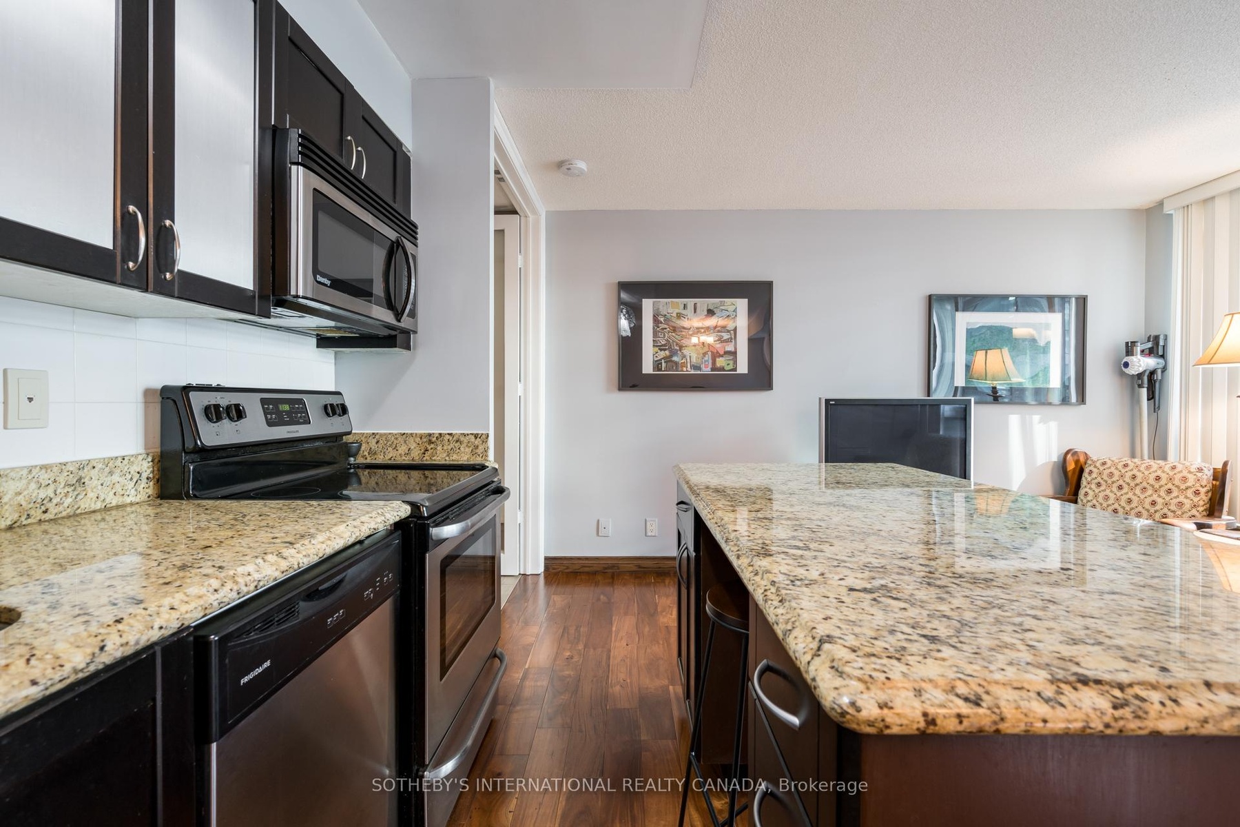 Welcome to Malibu Harbourfront, a 32-storey residence at Bathurst and Lakeshore. Inspired by California living, 600 Fleet Street offers easy access to the waterfront and the downtown core. This spacious two-bedroom, two-bathroom suite offers the ideal split-bedroom layout, with both bedrooms featuring private ensuites for maximum comfort and privacy. The open-concept living and dining area is framed by floor-to-ceiling windows, filling the space with natural light and leading out to a private south-west facing balcony. The kitchen is equipped with full-size stainless steel appliances, a generous island, and plenty of storage perfect for everyday living and entertaining. Additional features include hardwood floors throughout, in-suite laundry, one parking space, and one locker for your convenience. Life at Malibu Harbourfront means access to a full suite of amenities designed for work, wellness, and leisure. Stay active with a fully equipped gym, swim under natural light in the indoor pool with jacuzzi, or relax on the rooftop terrace with BBQs and tanning areas overlooking the lake and skyline. Entertain guests in the party and billiards rooms, book a guest suite for visitors, or enjoy the comfort of 24-hour concierge and security. Bike storage and visitor parking ensure every detail of modern urban living is covered. Positioned at the gateway to Toronto's waterfront, the building offers unmatched convenience. The TTC streetcar stops right outside, while Union Station is a short ride away. Everyday essentials like Loblaws, Shoppers Drug Mart, and Starbucks are just across the street. Walk to Coronation Park, the waterfront trail, Canoe Landing Community Centre, or head to the Entertainment District for restaurants, theatres, and nightlife. Major landmarks including Rogers Centre, Scotiabank Arena, BMO Field, and Billy Bishop Airport are all within walking distance, making this one of the most connected addresses in the city.