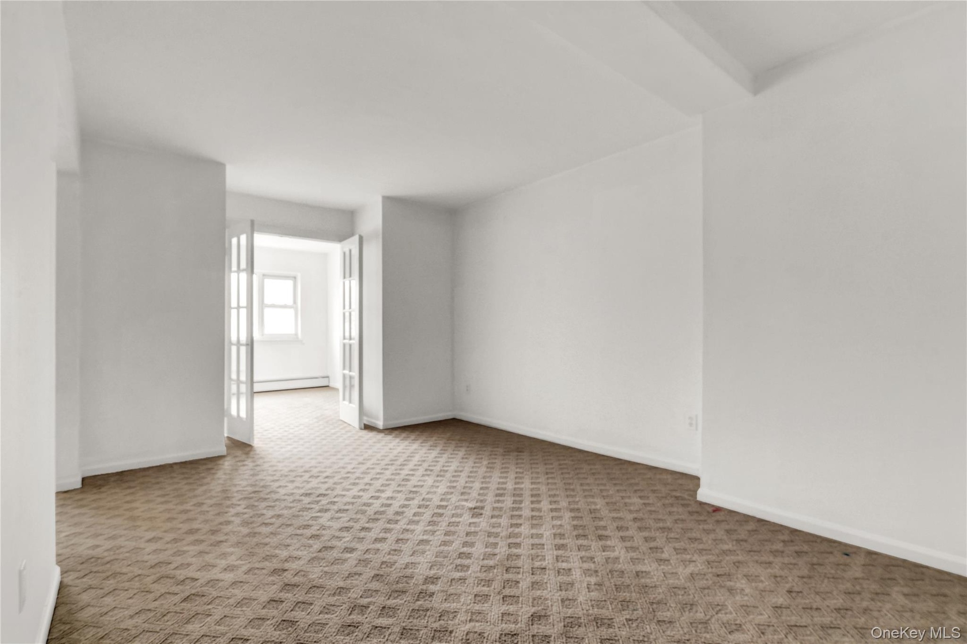 - Unfurnished room with carpet and baseboard heating