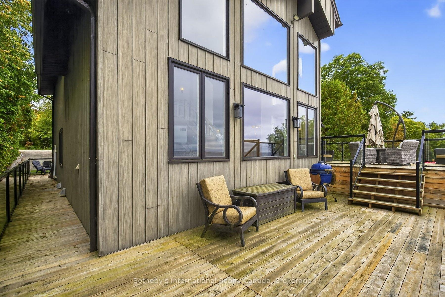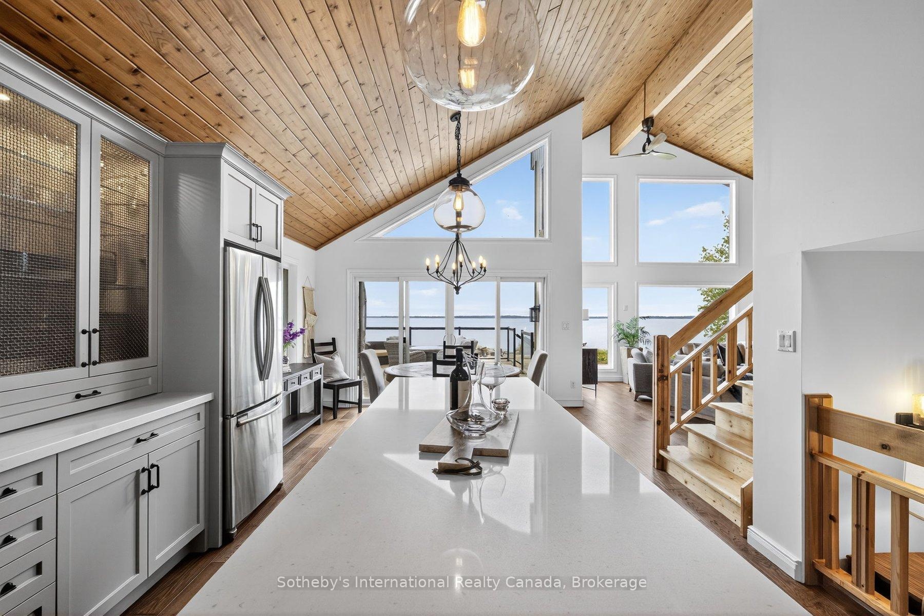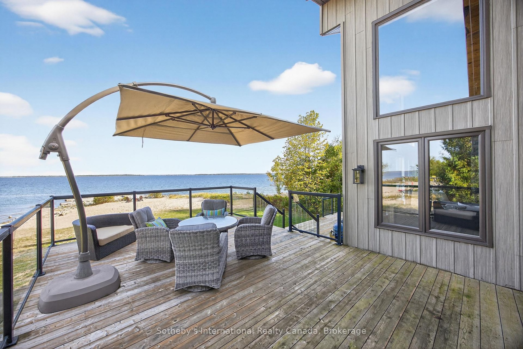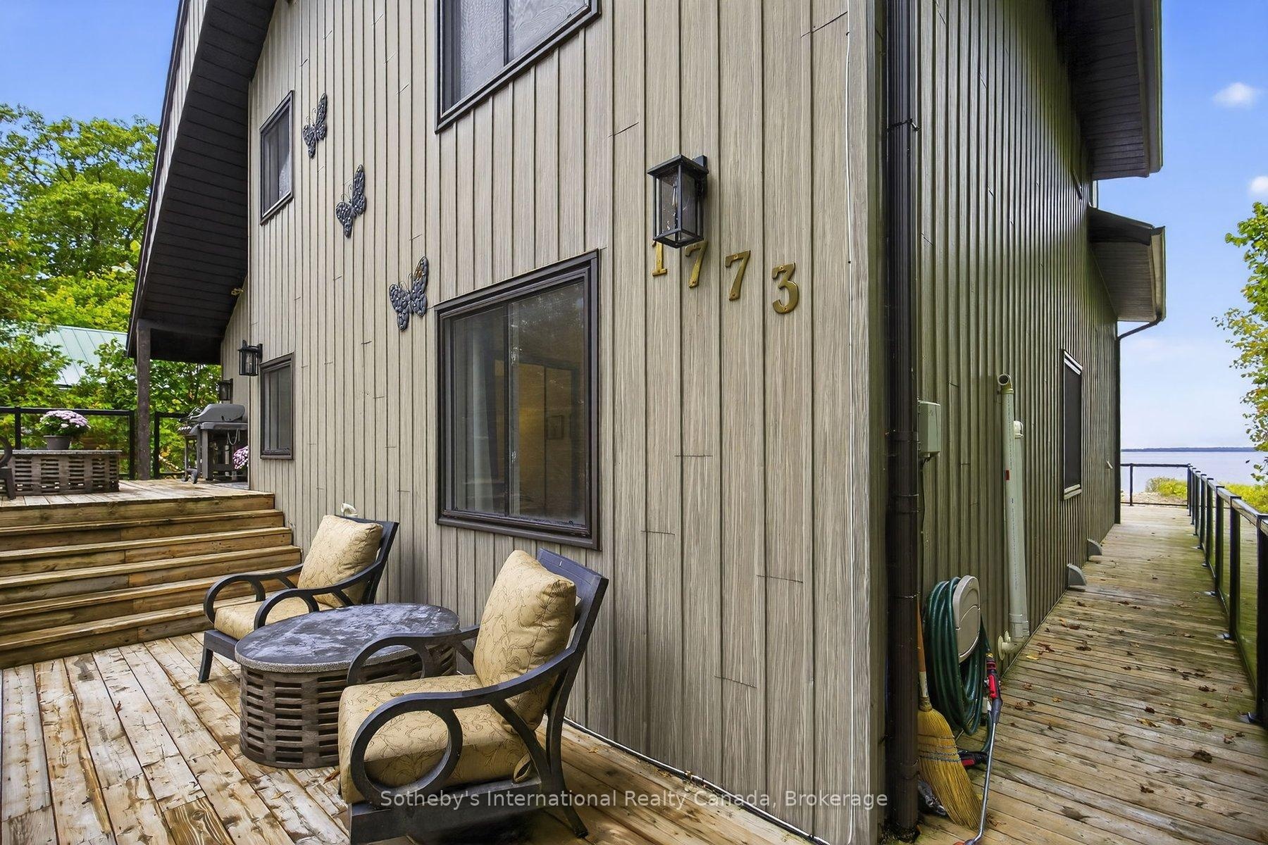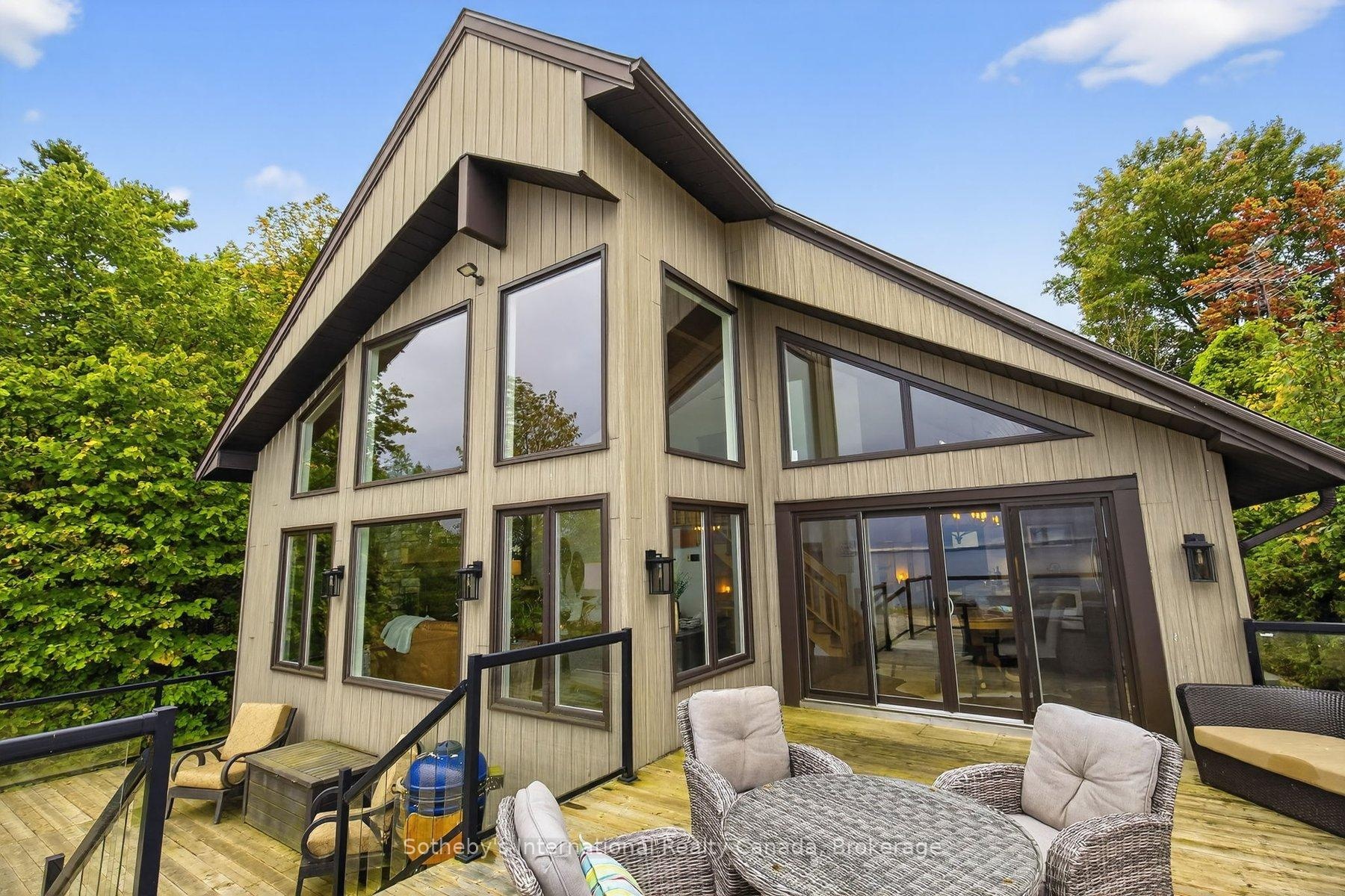 From the first light of dawn painting the bay in soft pinks to fiery sunsets stretching across the horizon, 1773 Champlain Rd offers a front-row seat to the exquisite beauty of Georgian Bay. With a stretch of natural shoreline, it delivers a true beach house lifestyle, the kind of property where the water shimmers at your doorstep, inviting barefoot days & memorable nights. This 3-bed, 2-bath beach house strikes a harmony between warmth & sophistication. A stone path leads to the front door, where the open-concept main floor unfolds with soaring cedar ceilings & engineered hardwood underfoot. Custom millwork by Interior Works Inc. defines the home, with a bespoke kitchen & beautifully finished bathrooms. Anchored by a generous quartz island & farmhouse sink. It flows into the dining area, perfect for dinners that linger long into the evening. Sliding doors open to the deck, where alfresco meals are enjoyed with panoramic lake views. Floor-to-ceiling windows draw the Bay into the heart of the home, while a Napoleon wood-burning fireplace adds warmth & intimacy. Upstairs, the primary suite is a private sanctuary. A freestanding clawfoot tub creates a sense of enduring romance. A custom walk-in closet blends function with elegance. At the same time, the spa-inspired ensuite is elevated with a generous double vanity, heated floors, a heated towel rack, & a glass curbless walk-in shower. Two additional beds & a stylish 3-pc bath create a welcoming retreat for family & guests. A main-floor laundry adds convenience, while the oversized detached garage (1344 sq ft) provides ample storage & endless potential in the loft above. The unfinished basement offers space for future customization. Completely updated inside and out. Windows & doors(2017), Tankless HTW(2024), Metal Roof(2019), Kitchen(2018), Baths(2025), Engineered hardwood floors(2025), Generac Generator(2025), Irrigation System(2019), Water Softener(2023), A/C & Furnance(2023).