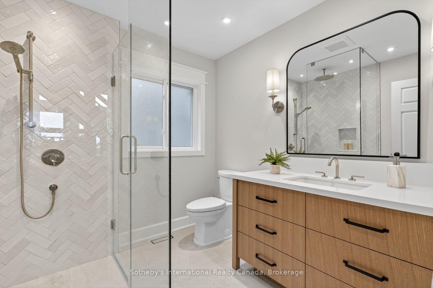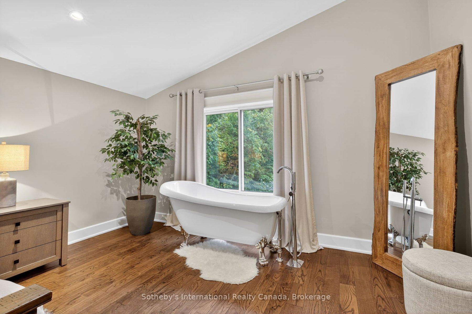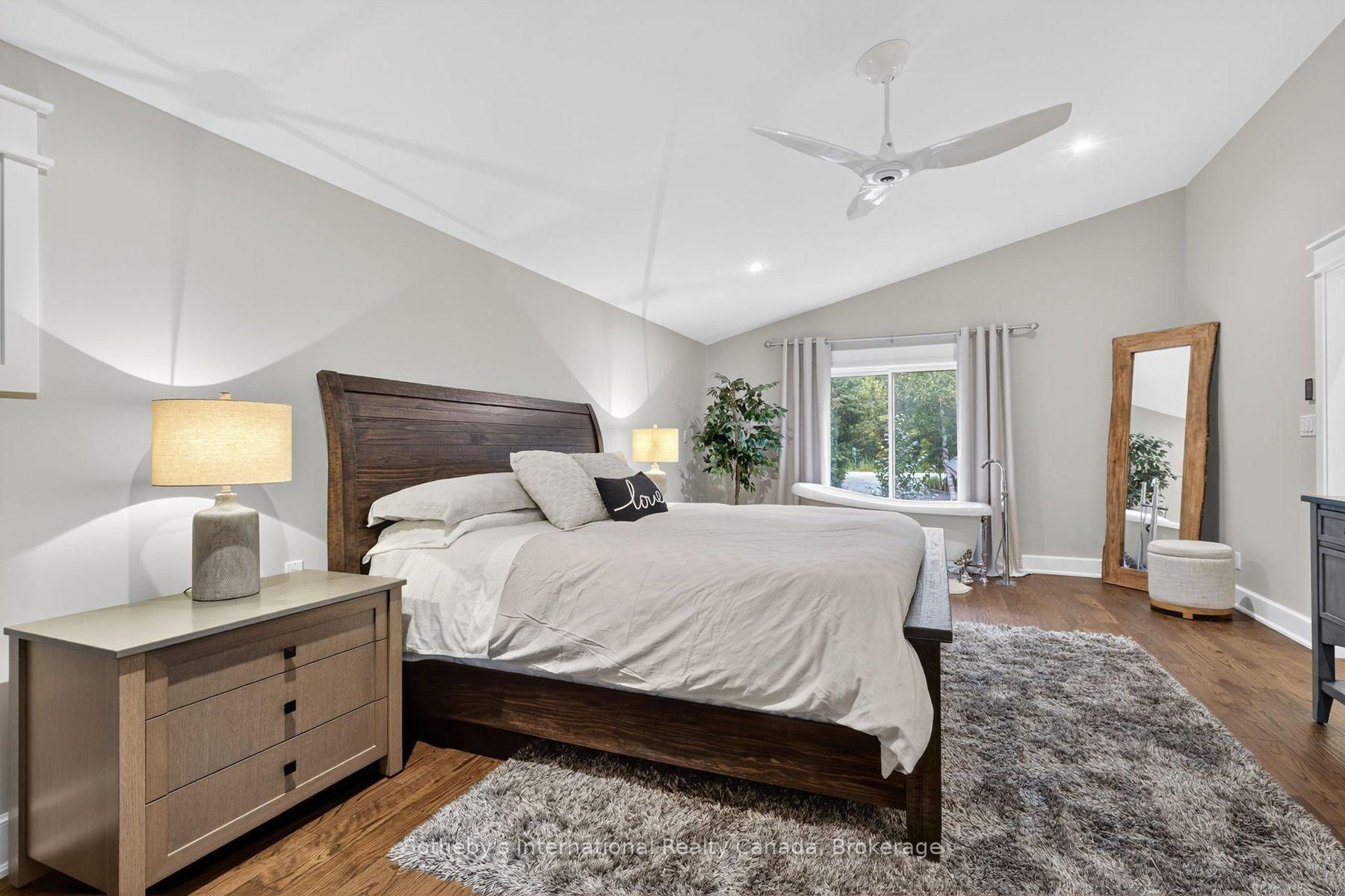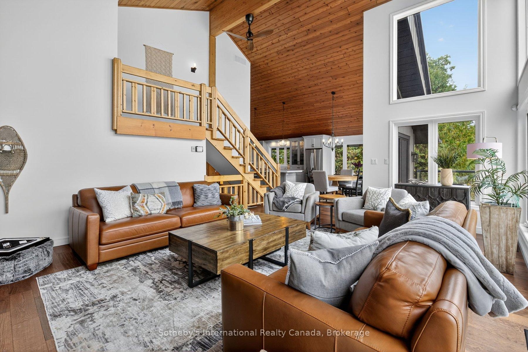 From the first light of dawn painting the bay in soft pinks to fiery sunsets stretching across the horizon, 1773 Champlain Rd offers a front-row seat to the exquisite beauty of Georgian Bay. With a stretch of natural shoreline, it delivers a true beach house lifestyle, the kind of property where the water shimmers at your doorstep, inviting barefoot days & memorable nights. This 3-bed, 2-bath beach house strikes a harmony between warmth & sophistication. A stone path leads to the front door, where the open-concept main floor unfolds with soaring cedar ceilings & engineered hardwood underfoot. Custom millwork by Interior Works Inc. defines the home, with a bespoke kitchen & beautifully finished bathrooms. Anchored by a generous quartz island & farmhouse sink. It flows into the dining area, perfect for dinners that linger long into the evening. Sliding doors open to the deck, where alfresco meals are enjoyed with panoramic lake views. Floor-to-ceiling windows draw the Bay into the heart of the home, while a Napoleon wood-burning fireplace adds warmth & intimacy. Upstairs, the primary suite is a private sanctuary. A freestanding clawfoot tub creates a sense of enduring romance. A custom walk-in closet blends function with elegance. At the same time, the spa-inspired ensuite is elevated with a generous double vanity, heated floors, a heated towel rack, & a glass curbless walk-in shower. Two additional beds & a stylish 3-pc bath create a welcoming retreat for family & guests. A main-floor laundry adds convenience, while the oversized detached garage (1344 sq ft) provides ample storage & endless potential in the loft above. The unfinished basement offers space for future customization. Completely updated inside and out. Windows & doors(2017), Tankless HTW(2024), Metal Roof(2019), Kitchen(2018), Baths(2025), Engineered hardwood floors(2025), Generac Generator(2025), Irrigation System(2019), Water Softener(2023), A/C & Furnance(2023).