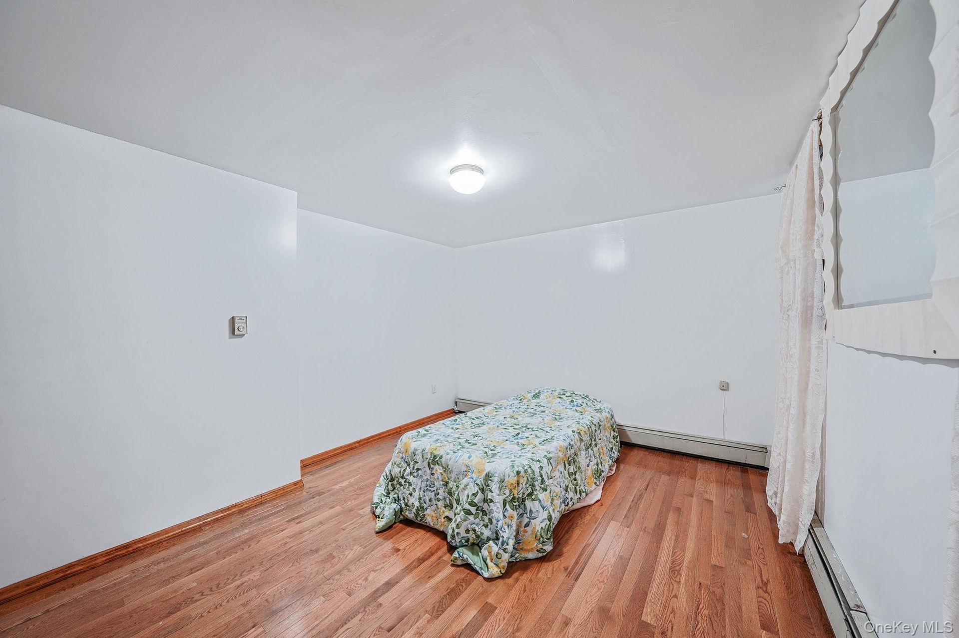 - Bedroom featuring light wood-type flooring and baseboard heating