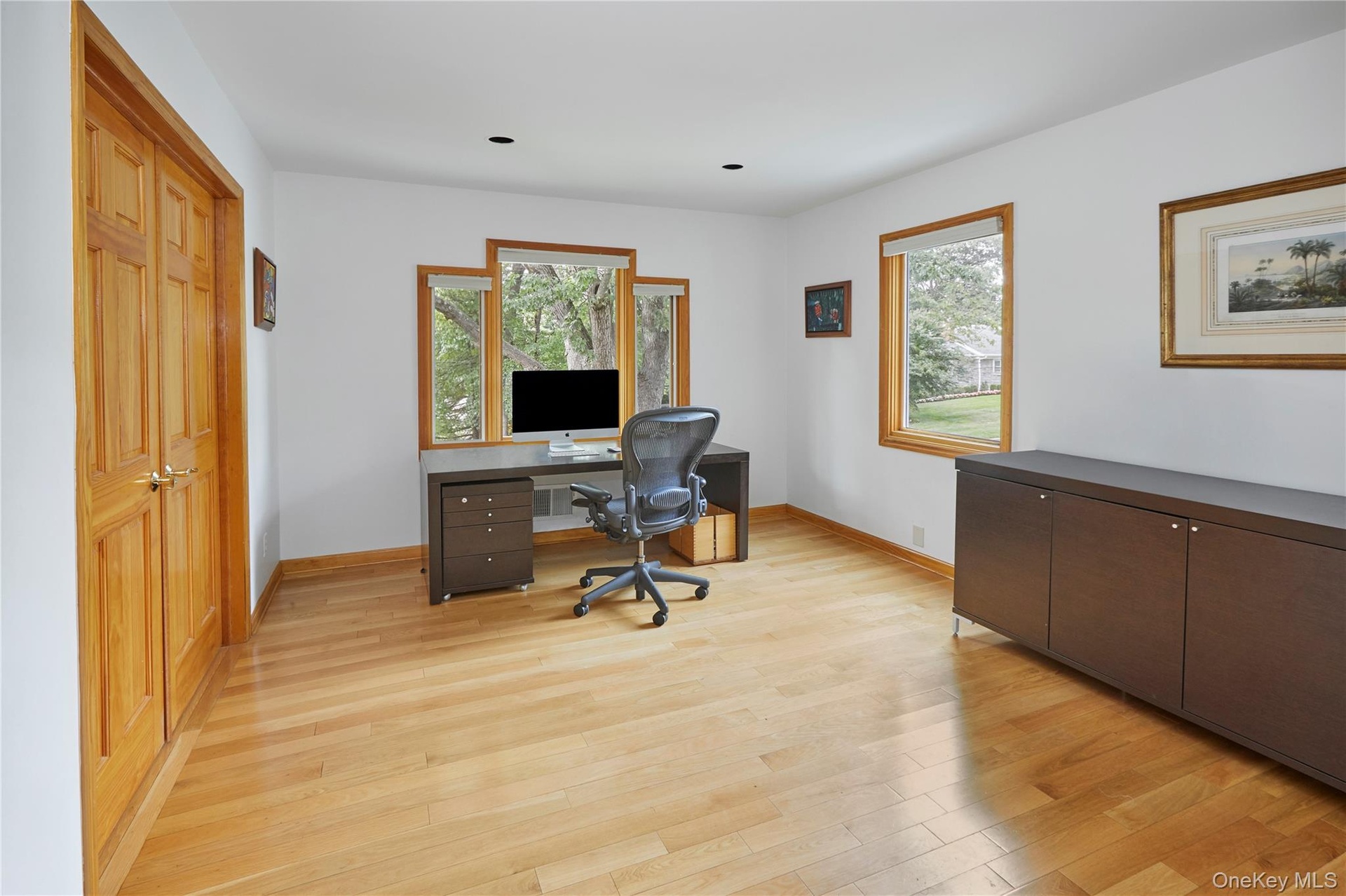 Enormous primary suite with skylights, office, dressing area, walk-in closet, steam shower & soaking tub