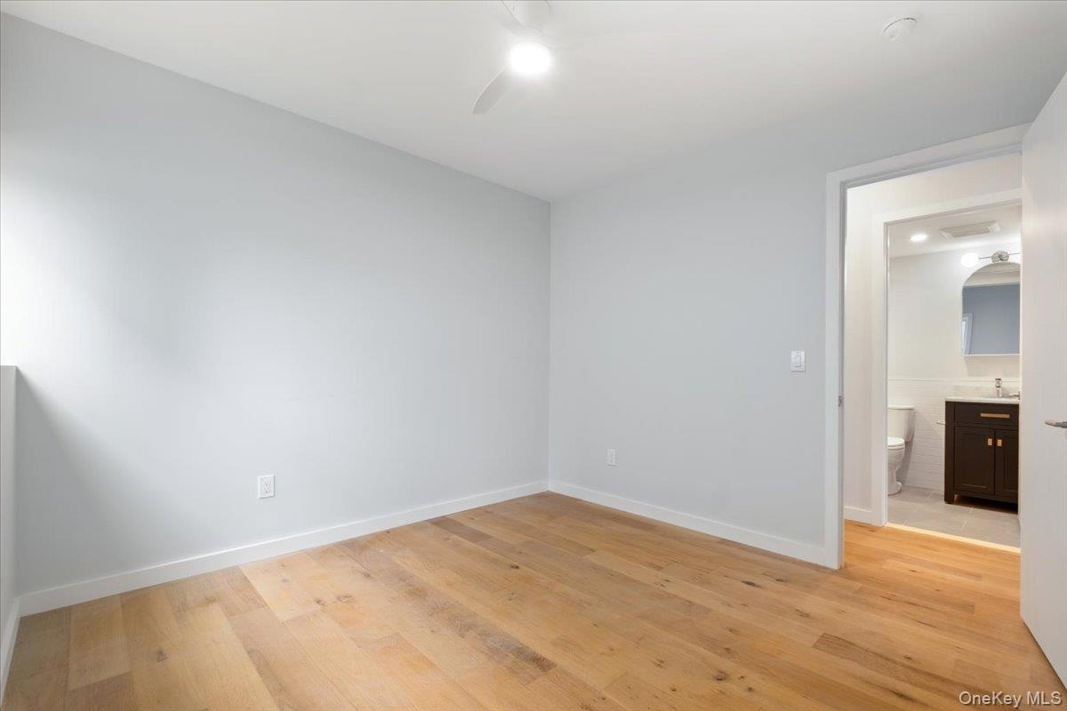 - Unfurnished bedroom with light wood-style floors and a ceiling fan