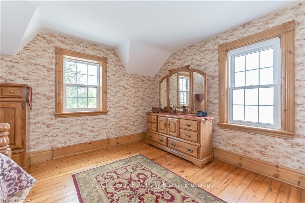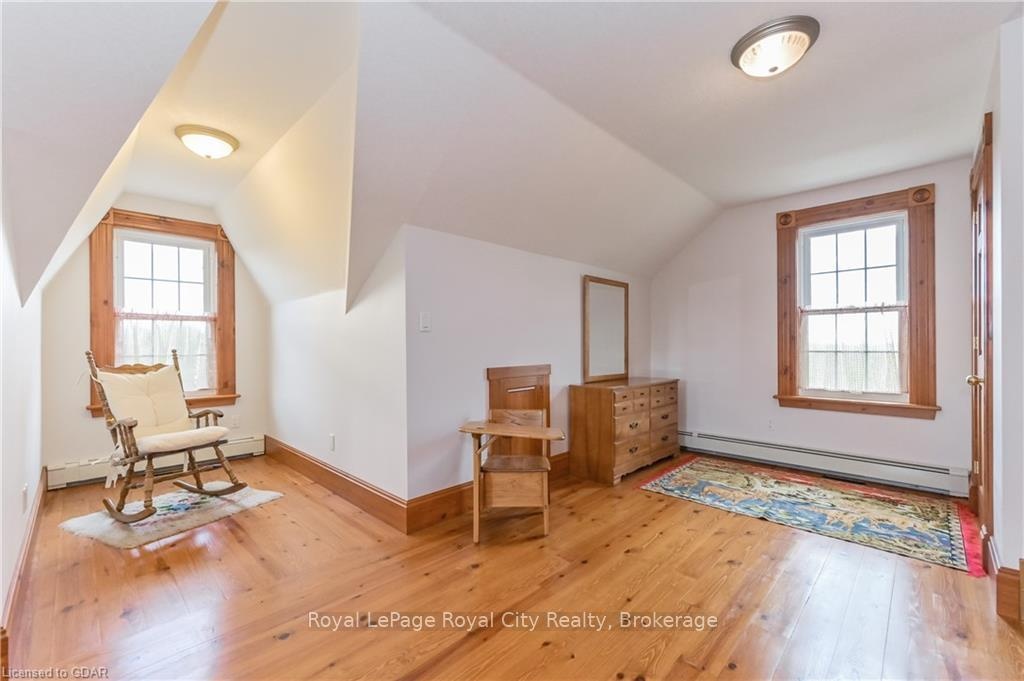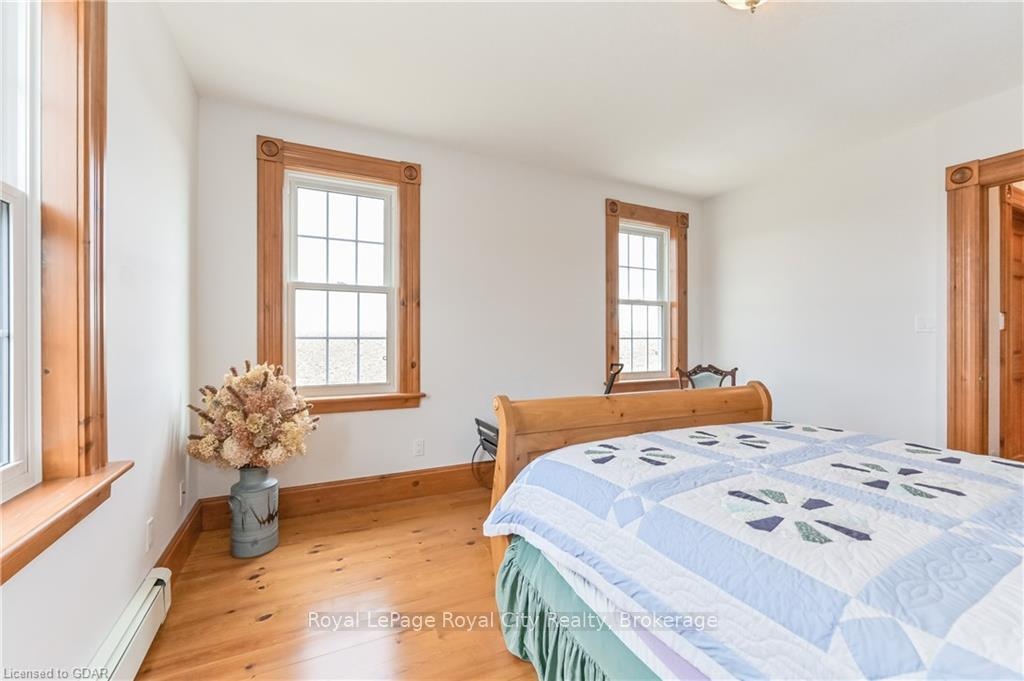 DescriptionThe perfect mixture, 65 acres of sandy well drained, rolling farmland, a hardwood bush, a pine forest, a pond and a large home, suitable for multi-generational living if desired, all tucked perfectly into this 86 acre country landscape. There are 2 large outbuildings, one very well maintained post and beam structure with hydro and a newer detached shop(8'4"x12' sliding door), wired for all your tools. The home, combines a Century Red Brick Farmhouse, lovingly cared for, with an addition custom built a little over 15 years ago to mimic the old world charm with large wood baseboards, trim and solid wood doors. A Wood Burning Stove, Heated Floors, a Geo-Thermal forced air system and Boiler baseboard system (with rough-in for outdoor wood burning furnace). There are many economical options to keep this large home warm and inviting, and also keep the power on with the automatic, whole home Generac Generator installed in 2023. There are 3 full bathrooms, 1 powder room and another just waiting for fixtures. On the older West Wing, there are 4 possible bedrooms and on the newer East Wing, there is a main level bedroom with ensuite and a large bedroom on the upper level that could be divided (with rough-in bath). The attached 2 car garage is oversized to fit a pick-up truck and underneath the garage is a clean and dry area that is currently used as the 'cantina' for salami and wine making. The 65 acres of farmland is currently leased. This home is one-of-a-kind, a must-see with so many options, great sandy loam soil for crops and livestock, or just a country residential paradise.Amenities- Accessory Apartment