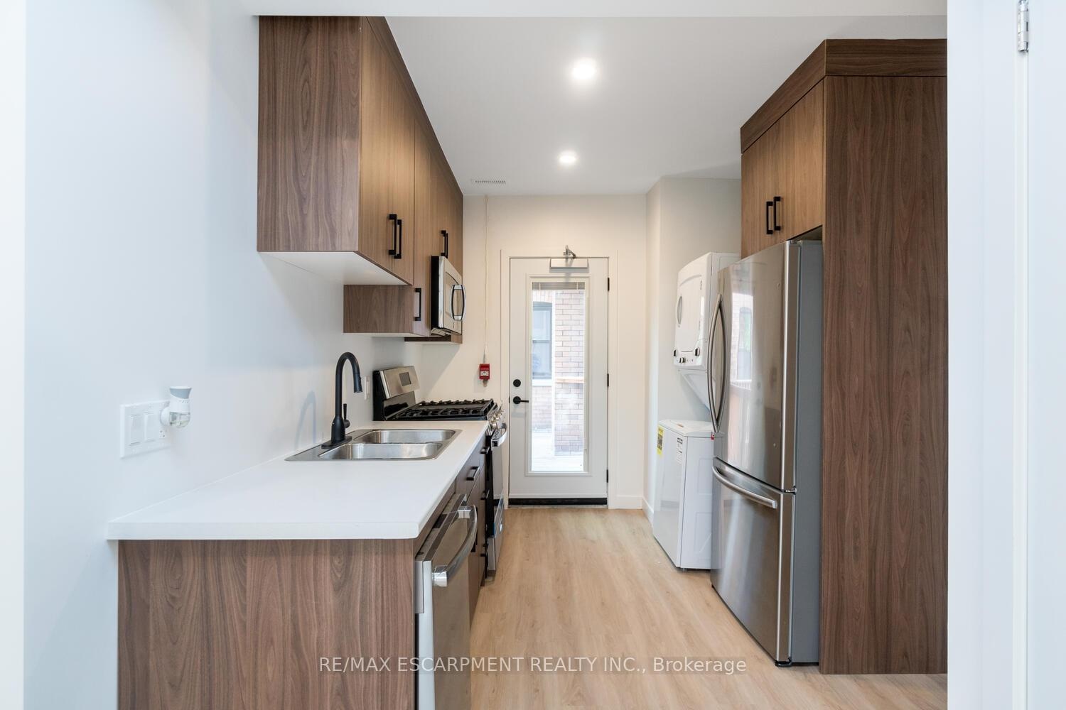 Oakwood Apartments Border of Stinson & CorktownAvailable November 1st Stunning, spacious, and bright 1 bed 1 bath unit for lease! This contemporary suite features a galley kitchen with stainless steel appliances and a gas range, soaring ceilings with pot lights, oversized windows, and light-toned flooring throughout. Enjoy the convenience of ensuite laundry and a modern 4-piece washroom.Street parking available (first come, first serve). Steps to transit, hospitals, recreation centre, and walking distance to Hamilton GO.Perfect for professionals seeking a stylish home in one of Hamiltons most vibrant neighbourhoods.