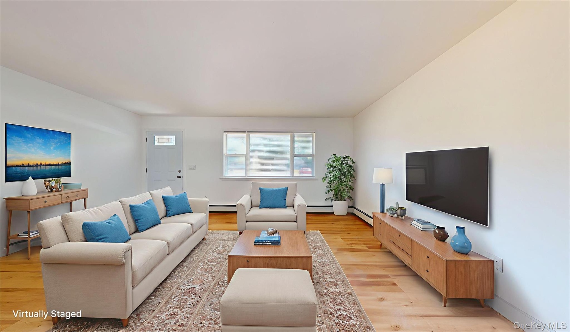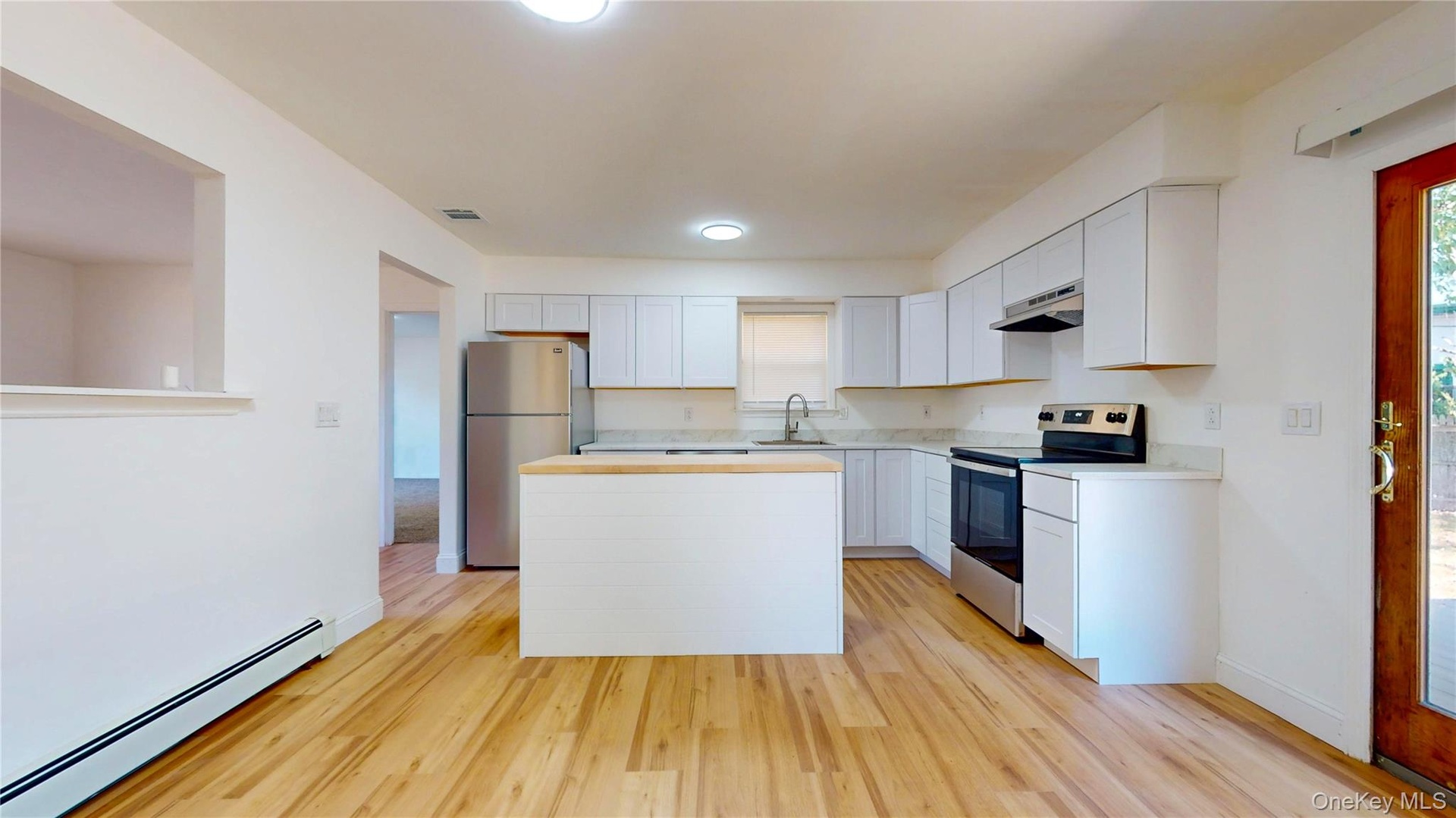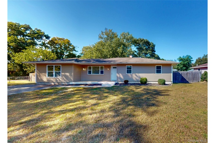 Completely renovated wide-line ranch on a corner lot. Features new vinyl siding, Trex front porch and rear deck, new white soft-close kitchen cabinets, stainless steel appliances, and updated bathrooms. Professionally painted throughout with new laminate flooring and carpet in bedrooms. Ductwork ready for central air. Upgraded 200 AMP electric panel. Primary suite with private bath, plus three additional bedrooms and full bath. Super low taxes under $7,000.