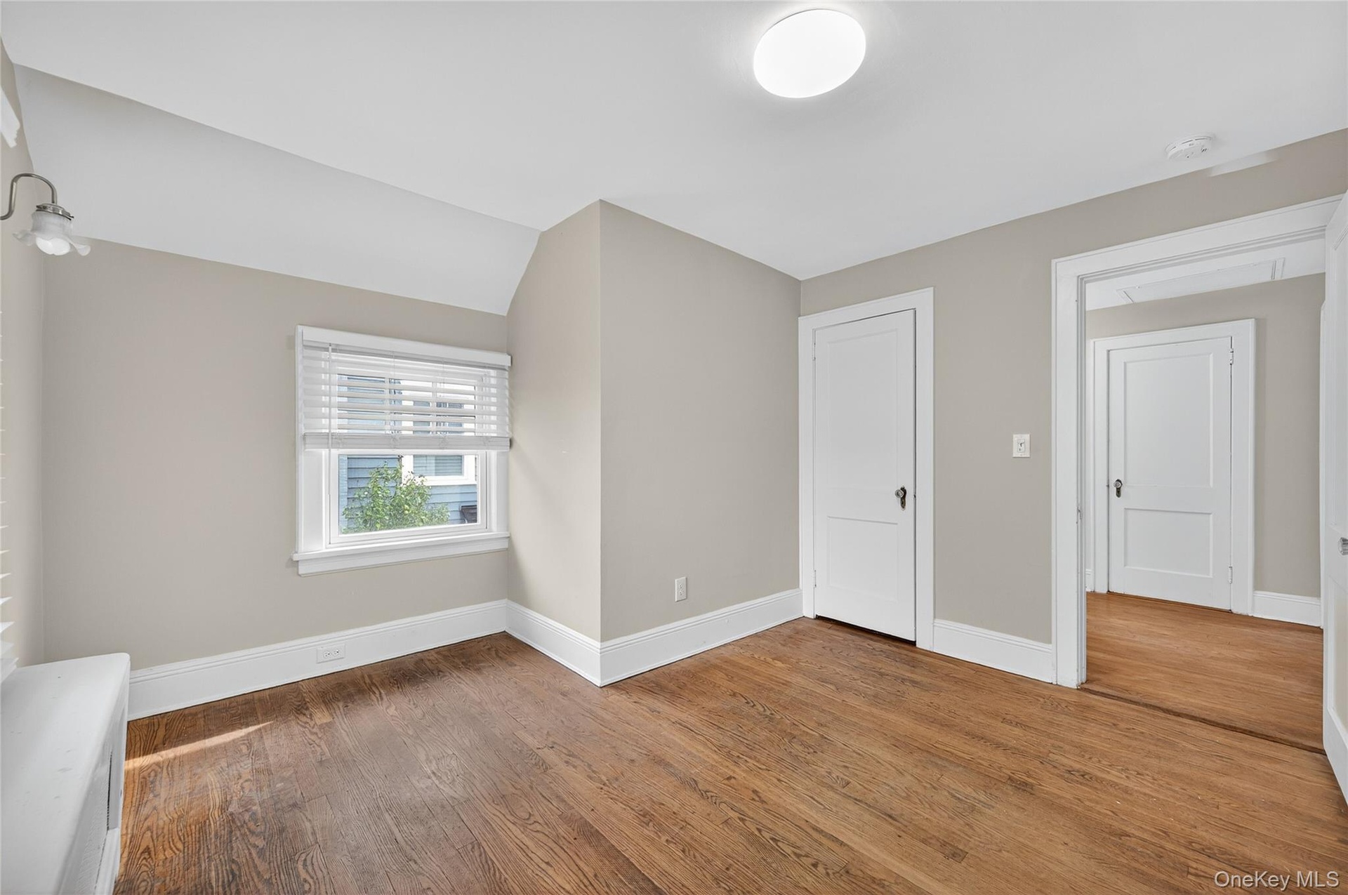 - Additional living space featuring radiator heating unit, wood finished floors, and vaulted ceiling