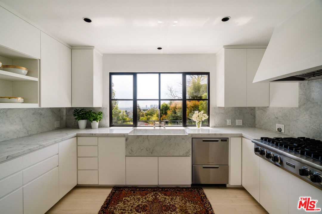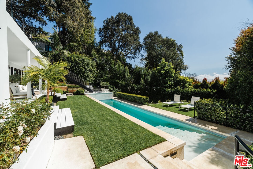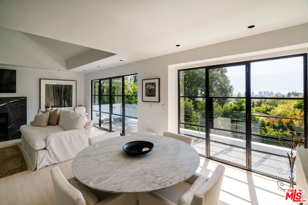 1558 Sunset Plaza Drive represents contemporary Hollywood Hills living at its finest. This meticulously renovated 3,250-square-foot home offers four bedrooms, three-and-a-half bathrooms, and a thoughtful design that prioritizes light, views, and the seamless indoor-outdoor lifestyle that defines Southern California.Custom steel windows and doors throughout create walls of glass that frame stunning vistas while flooding the interior with natural light. The open floor plan connects spacious living and dining roomsboth featuring custom built-insto a covered patio with electric shade. The adjacent family room features one of three wood-burning fireplaces, creating warmth and ambiance. A formal dining area and bar provide versatility for entertaining.The gourmet kitchen delivers both style and function with Sub-Zero and Wolf appliances, built-in breakfast bar, and ample storageall wrapped in a sophisticated neutral palette.A standout feature: two expansive primary suites. The main suite on the lower level offers south-facing garden views, custom fireplace, walk-in closet, direct patio and pool access, and a private dry sauna. The upper-level primary suite provides garden views, privacy, and a beautifully appointed bathroomperfect for guests or multi-generational living.The outdoor spaces truly elevate this property. Surrounded by mature landscaping for maximum privacy, the backyard features a 40-foot chemical-free swimmers pool, outdoor BBQ area, and breathtaking jetliner views expertly framed by thoughtful landscaping.Additional features include two-car garage with street parking, state-of-the-art security, central HVAC, laundry room, original hardwood floors throughout, and newly updated Carrara marble bathrooms with Dornbracht fixtures.Located minutes from the Sunset Strip and Beverly Hills, this home offers the perfect balance of peaceful privacy and urban accessibilitya true Hollywood Hills sanctuary that's move-in ready and designed for modern living.