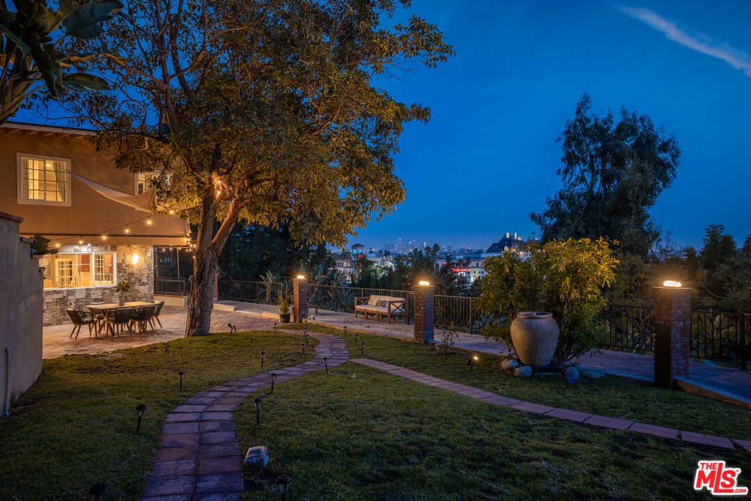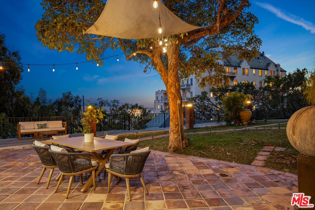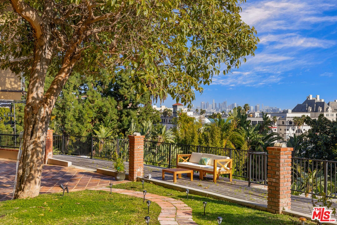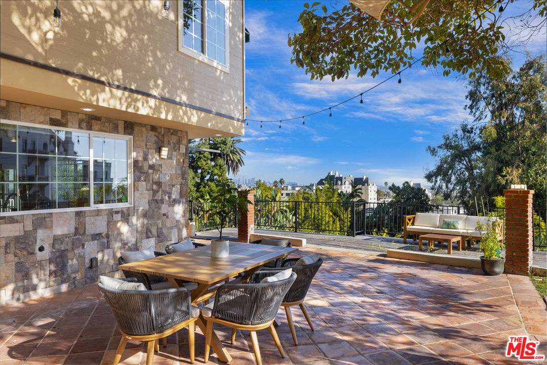 Perched on a beautiful lot above the iconic Chateau Marmont, this splendidly proportioned two-bedroom home is primed for both comfortable living and exceptional entertaining. The expansive, sunlit living room is framed by paned French doors that open seamlessly to the deck, while the dining room boasts dual built-in wine storage areas perfect for the collector or entertainer. The chef's kitchen features wood countertops, stainless steel appliances including double ovens and two dishwashers, and a large central island for gatherings. Upstairs, two master-sized bedrooms each offer en-suite bathrooms with luxurious soaking tubs; one enjoys a private deck with sweeping views. Outside, the home's bohemian spirit shines. A one-of-a-kind outdoor entertaining area is artfully designed with a gallery of mirrors, soaring sails, and expansive decks that capture vistas stretching from Downtown Los Angeles to the Westside. With a 2-car garage and the rare opportunity to acquire the adjoining lot together totaling over 14,000 square feet this offering presents the chance to create an iconic double-lot compound. Architectural plans by renowned Japanese architect group OSO envision a world-class oasis, making this a builder's dream in a location that is nothing short of legendary. In addition to being a spectacular primary residence, the property also functions as an outstanding rental or Airbnb opportunity, with its iconic location, flexible entertaining spaces, and furnished turnkey appeal.