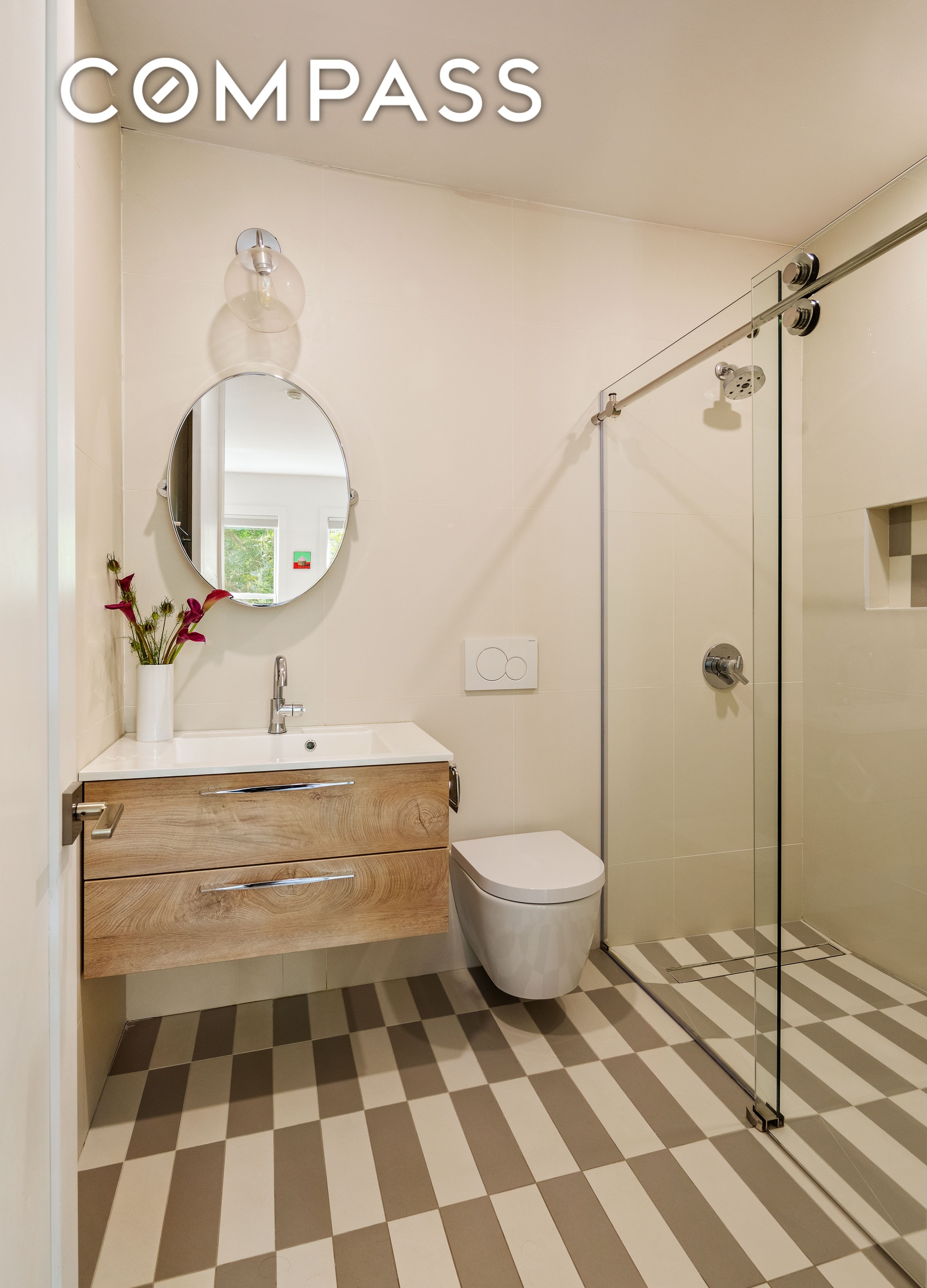 The self-contained garden apartment delivers reliable rental income with its smartly designed one-bedroom, one-bath layout and open living area. The bedroom includes double closets and serene garden views, and an in unit washer-dryer, making it easy to attract quality tenants.