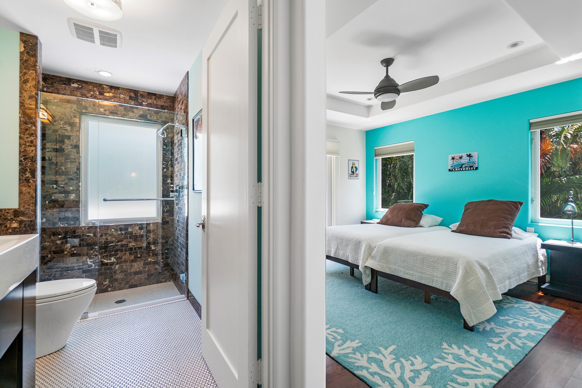 Welcome to the Island's only LEED Platinum-certified ''Green'' home--an architectural Art Deco jewel built in 2013 by Tim Givens and designed by Jacqueline Albarran. This outstanding residence, honored with the Schuler Award for architectural excellence, integrates solar panels, impact glass, and locally sourced materials. Nestled on the sought-after North End of Palm Beach, just two homes from the ocean with beach access, it epitomizes indoor-outdoor living. The home offers three ensuite bedrooms plus a flexible fourth bedroom, den, or yoga studio, along with a great room, open chef's kitchen, covered patio, and upper balconies. Southern exposure enhances the heated pool with swim jets, spa, and summer kitchen. Terrazzo and wood floors, ample closets, sound system & two car garage.
