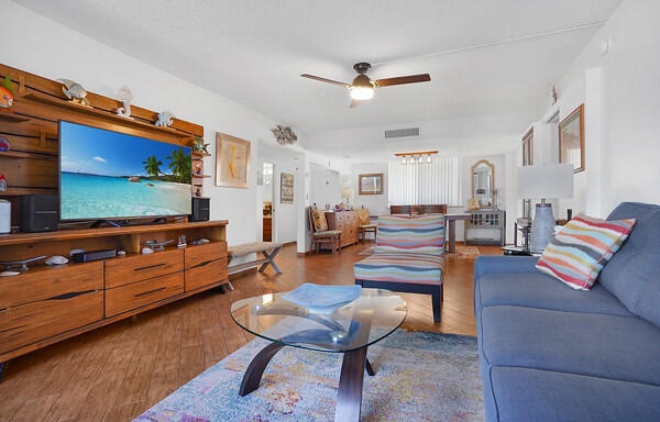 Near beach!  Located east of US1, close to white sandy, dog-friendly beach.  Tennis club with 13 hartru courts are located in community for additional fee. Call JORC for more tennis info.  Condo is turnkey, fully furnished and is one of the largest units in community with tons of closet space and large, ocean facing balcony w/obscured view.  Located on 4th floor, near elevator of 6 story building with only 22 units.  Building has completed restoration.  Community offers two pools.  One assigned parking spot and plenty of guest parking.  Near Riverwalk and Harbourside.  Abundant shopping and dining nearby.