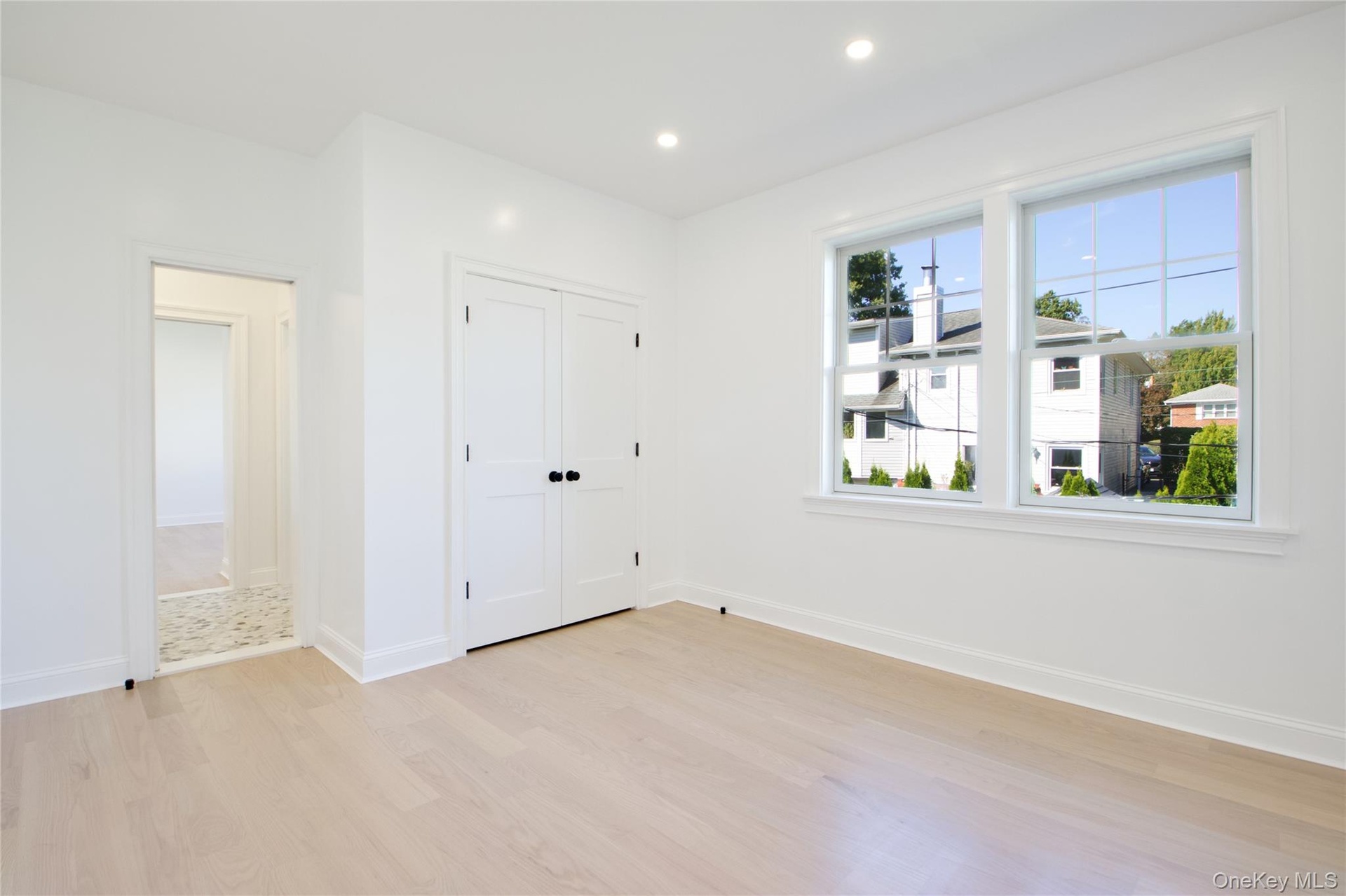 - Unfurnished bedroom with light wood-style floors, recessed lighting, and a closet