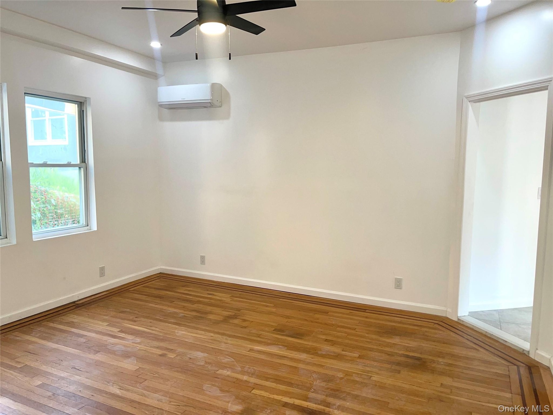 - Spare room featuring hardwood / wood-style flooring, a ceiling fan, a wall mounted air conditioner, and recessed lighting