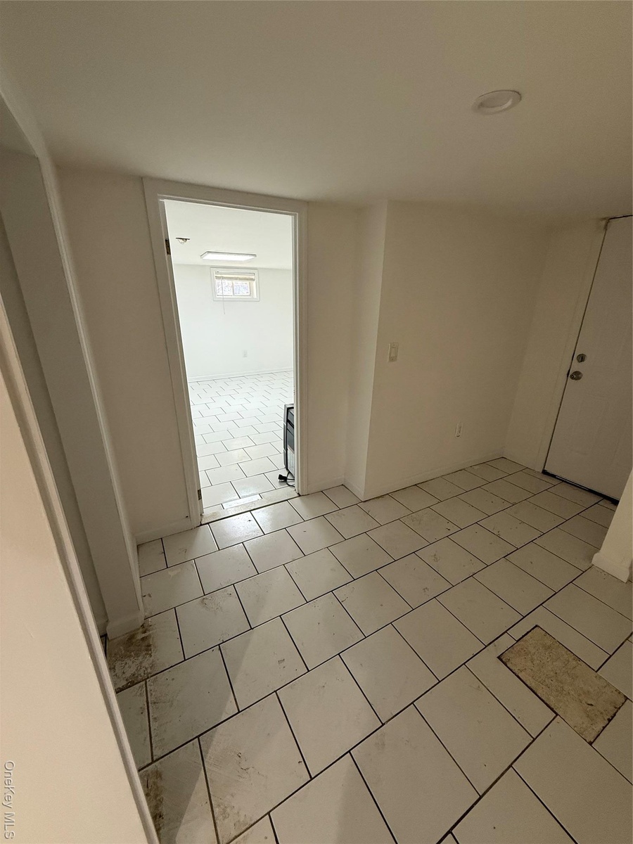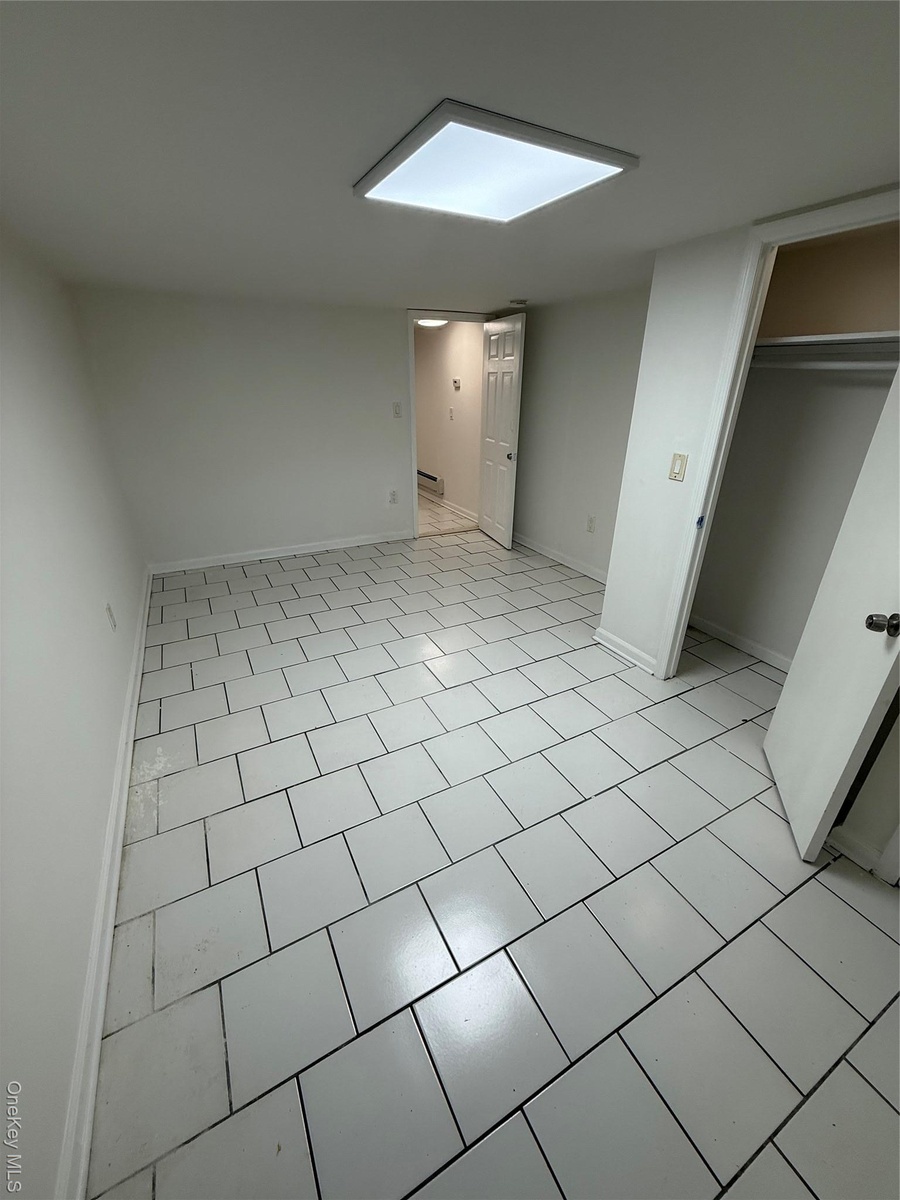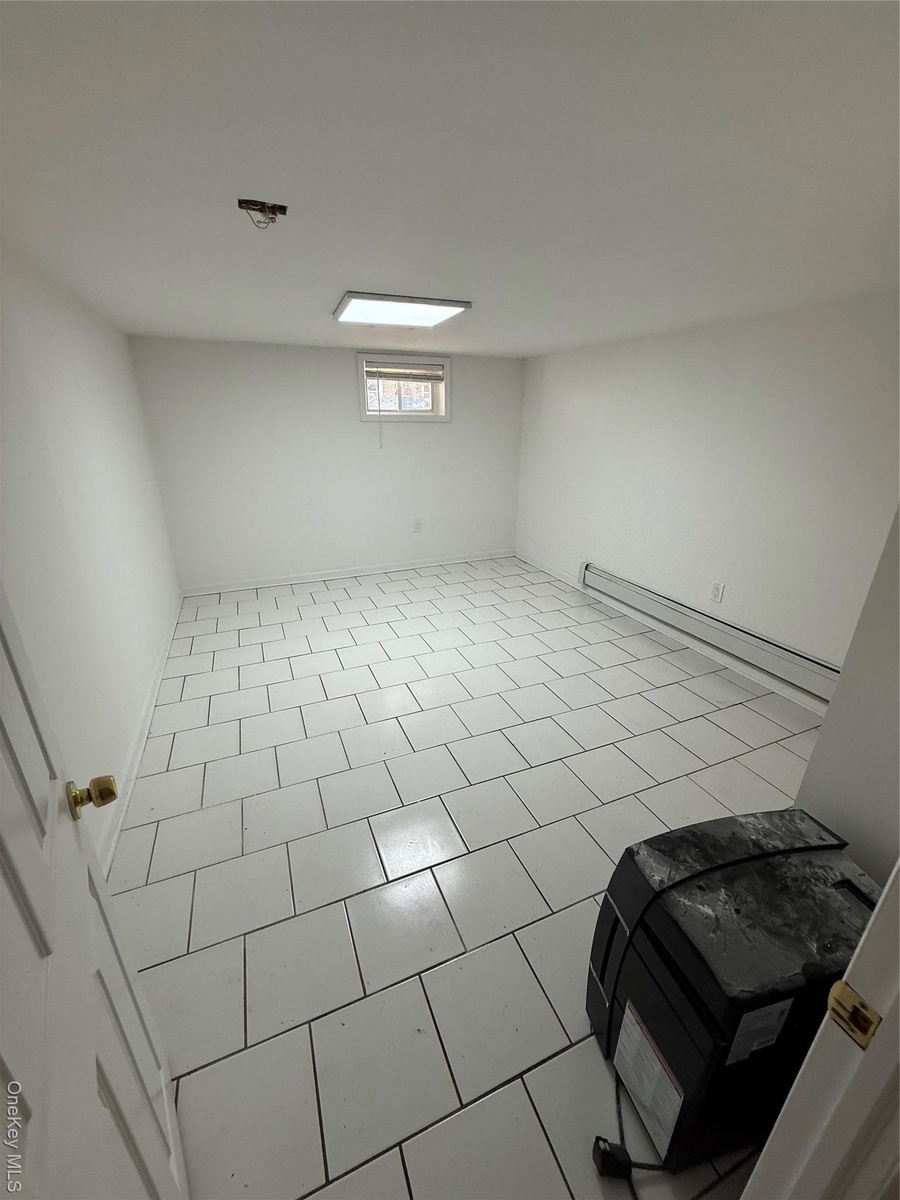 - Below grade area featuring a baseboard heating unit and light tile patterned floors