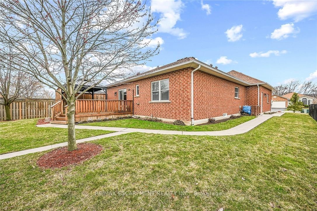 Tastefully updated, lovingly maintained Custom Built 2 bedroom, 2 bathroom all brick Bungalow in Hagersvilles premier subdivision on premium 65 x 117 lot on desired Oak Crescent. Great curb appeal with attached double garage, concrete driveway, welcoming front porch, shed, partial fenced yard, & mature back yard complete with deck & gazebo area. Open concept interior layout includes over 2000 sq ft of living space highlighted by 9 ft ceilings throughout, eat in kitchen, formal dining area, family room with gas fireplace, additional MF living room, 2 bedrooms including primary suite with 3 pc ensuite, 4 pc primary bathroom, foyer, & patio door walk out to extensive deck. The partially finished basement features large rec room, games area, & oversized storage area that can be finished to add to overall living space. Ideal for those looking for main floor living, young family, or 2 family home / in law set up.